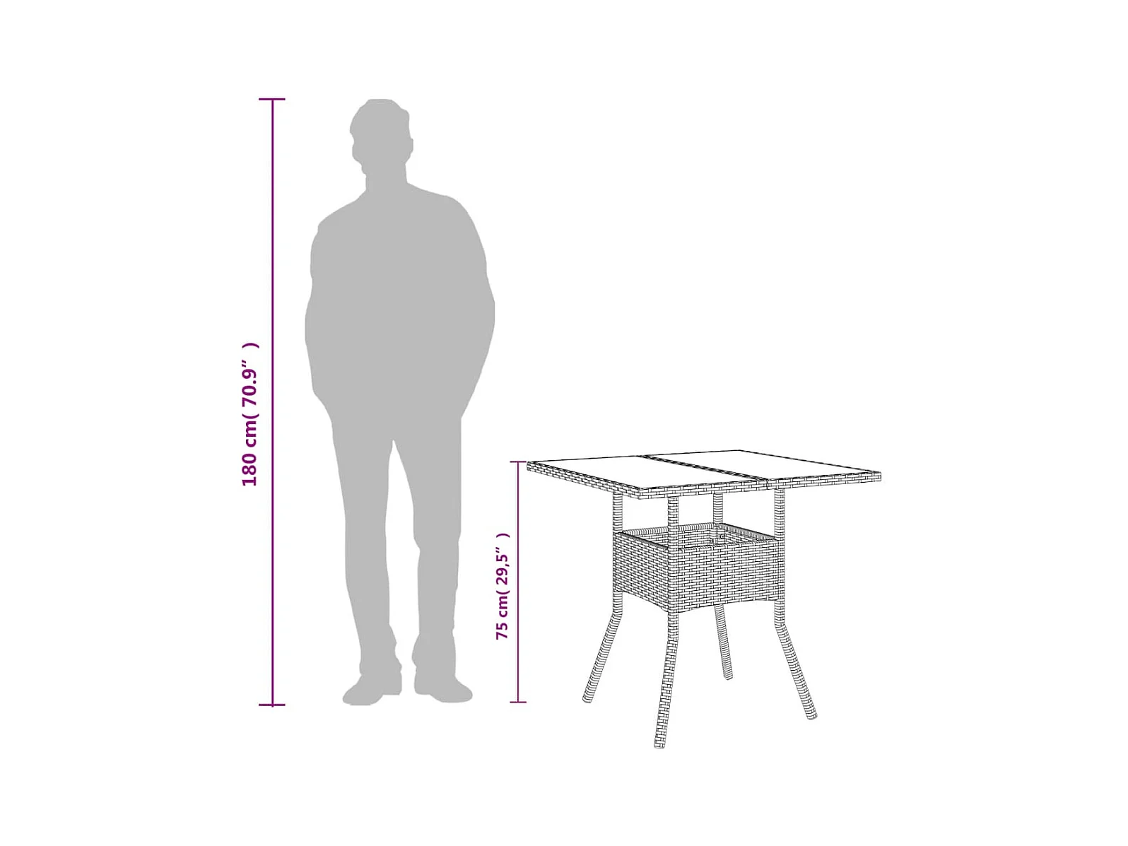 Table de jardin Ø80x75 cm Verre trempé/résine tressée Marron