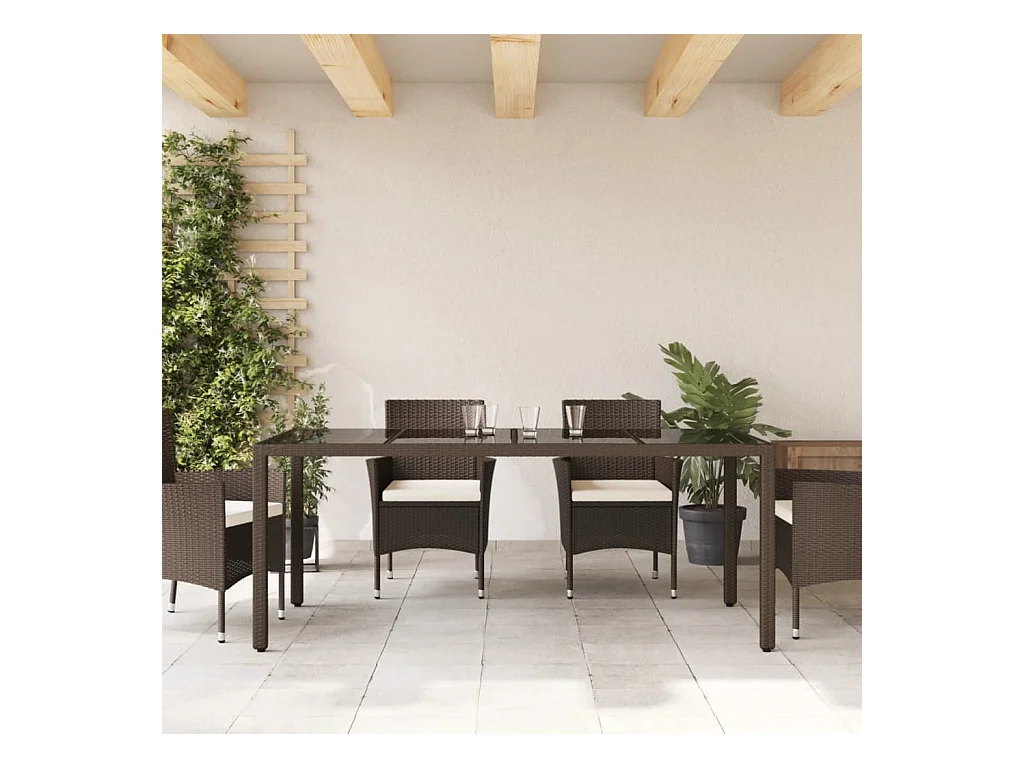 Table de jardin Marron 190x90x75 cm Verre trempé/résine tressée