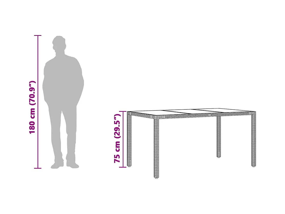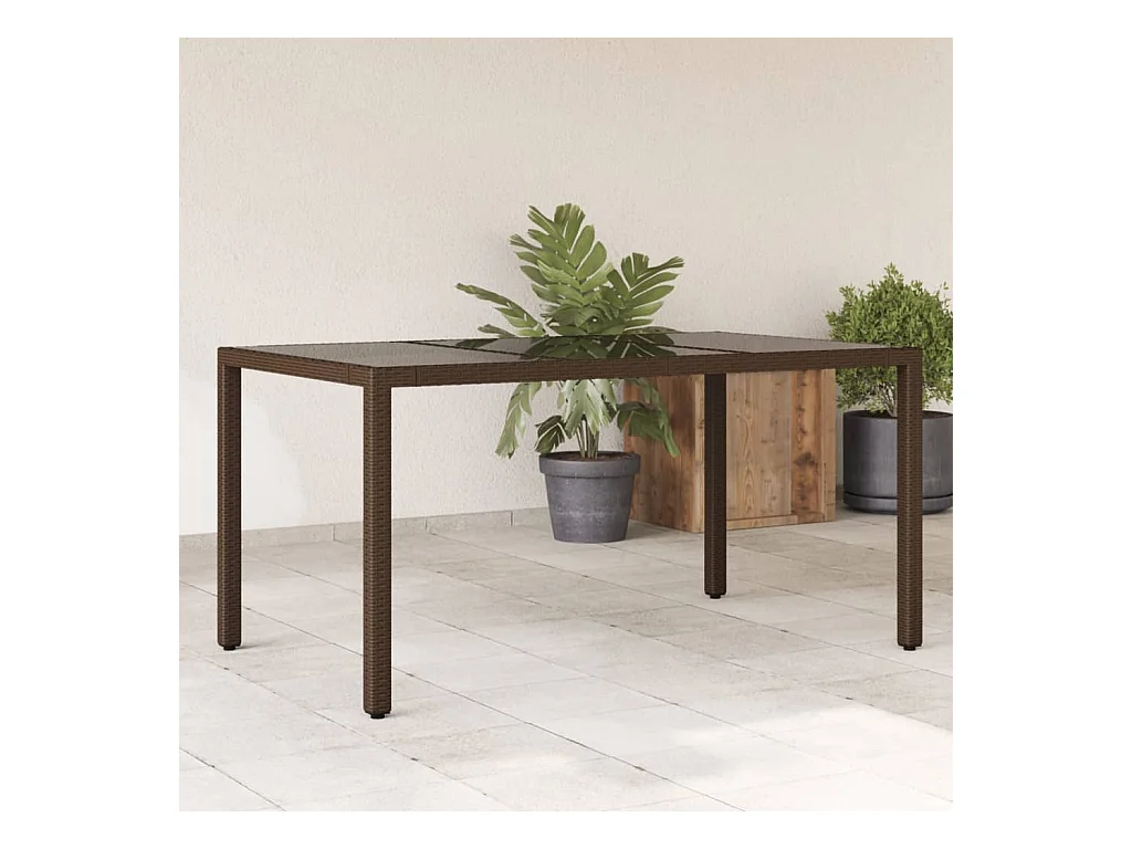 Table de jardin 150x90x75 cm Verre trempé/résine tressée Marron