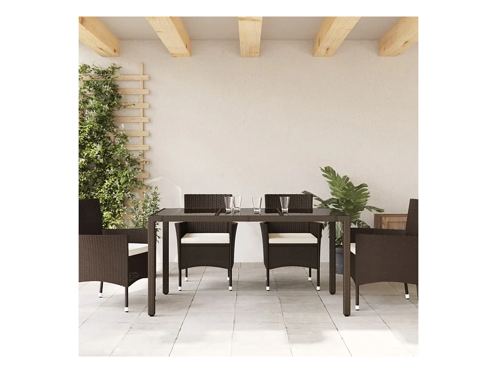 Table de jardin avec dessus en verre marron résine tressée FR747837