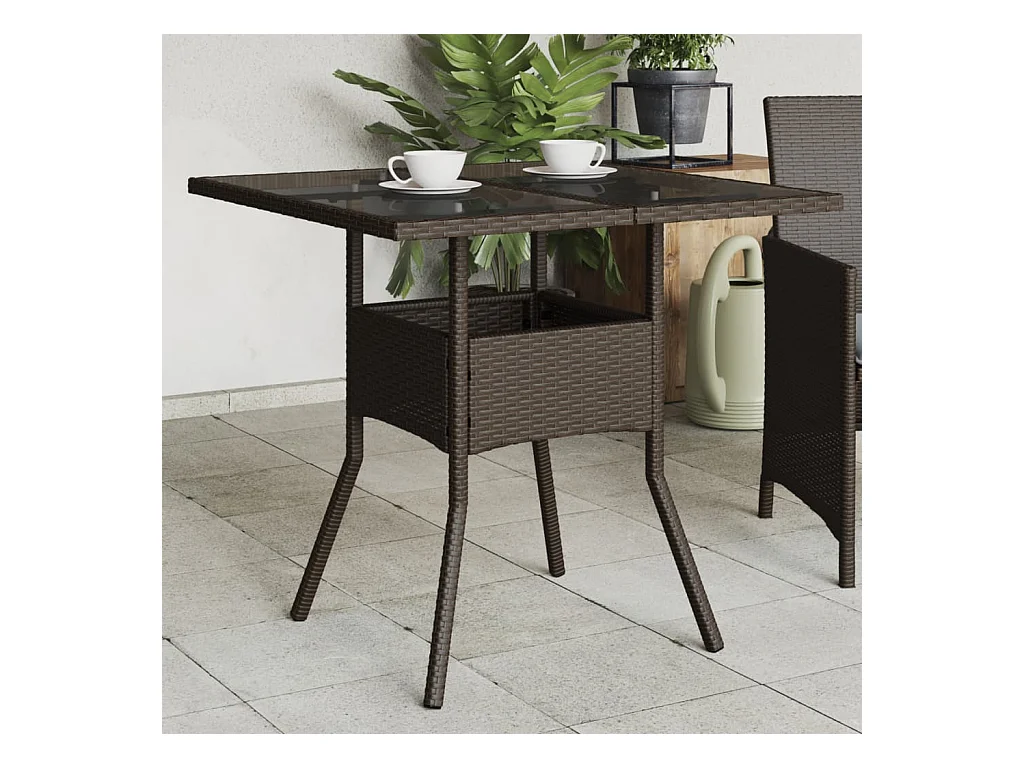Table de jardin avec dessus en verre marron résine tressée FR315034