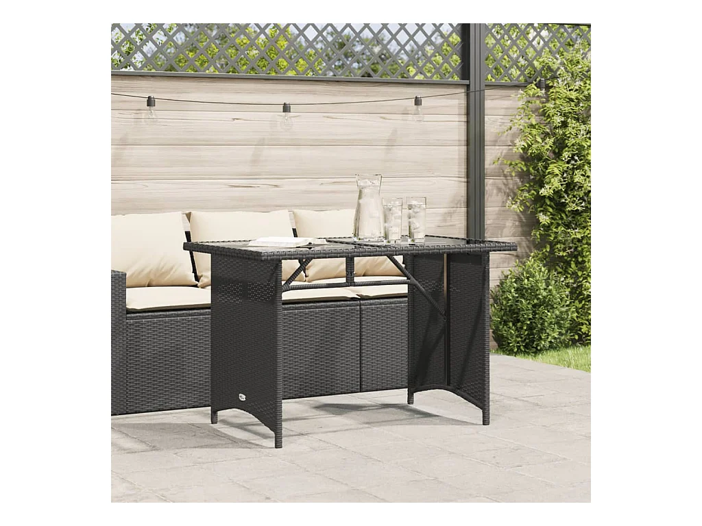 Table de jardin avec dessus en verre noir 110x68x70 poly rotin