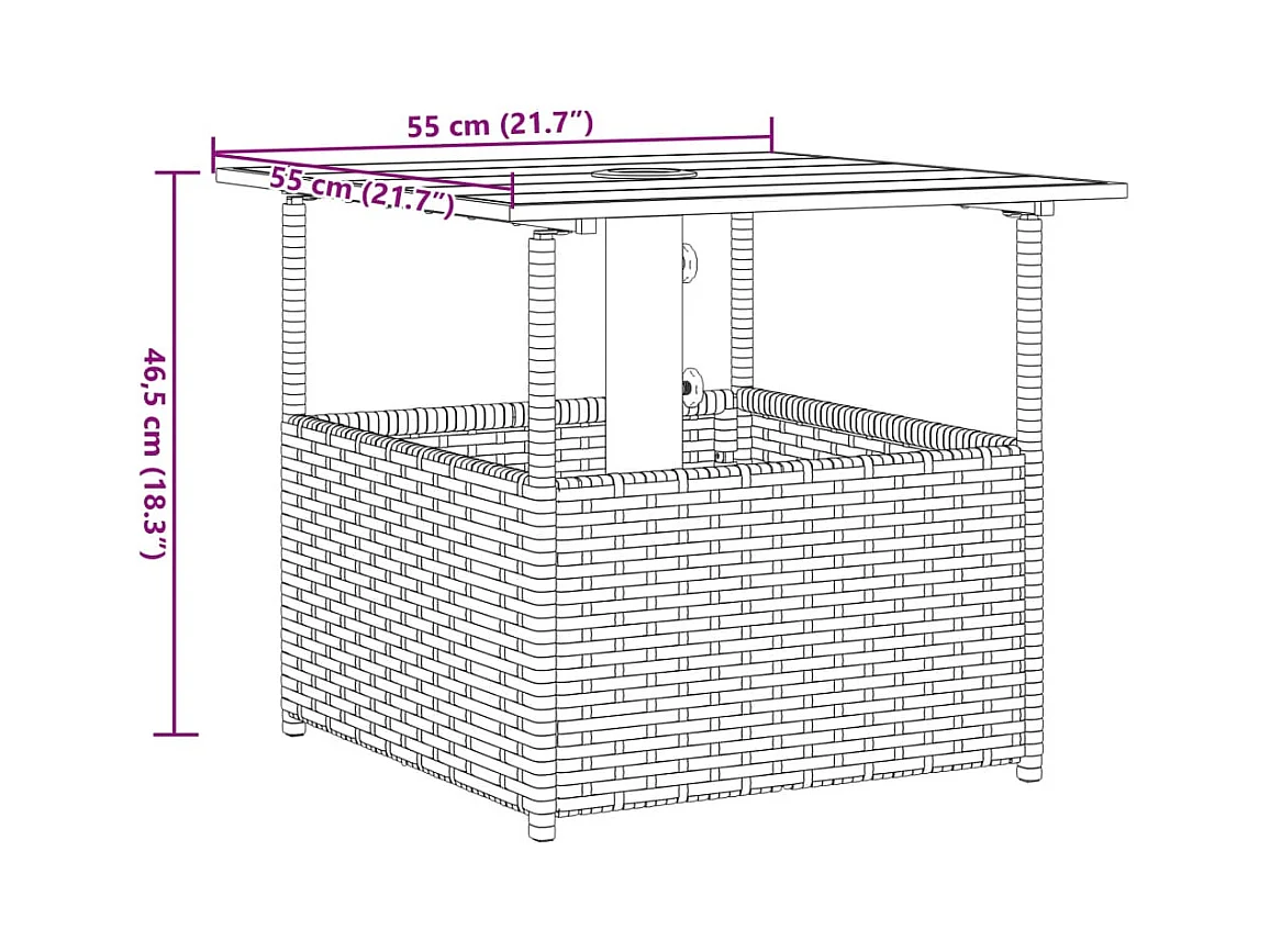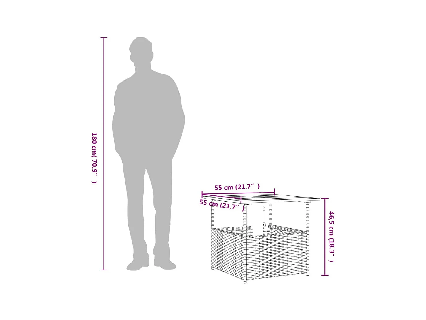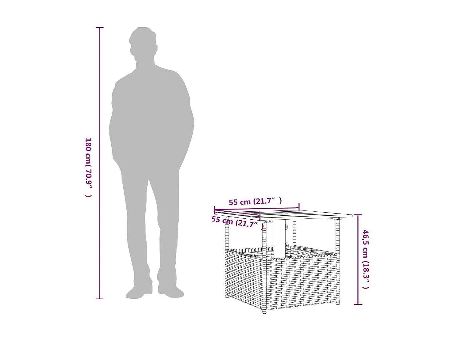 Table de jardin Marron 75,5x106 cm Résine tressée