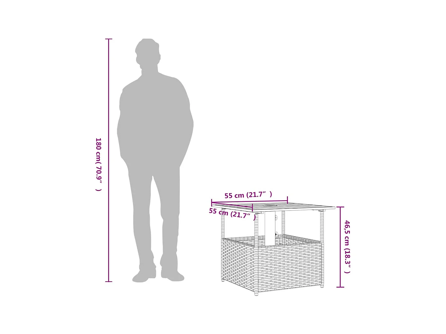 Table de jardin noir 55x55x37 cm résine tressée et bois acacia