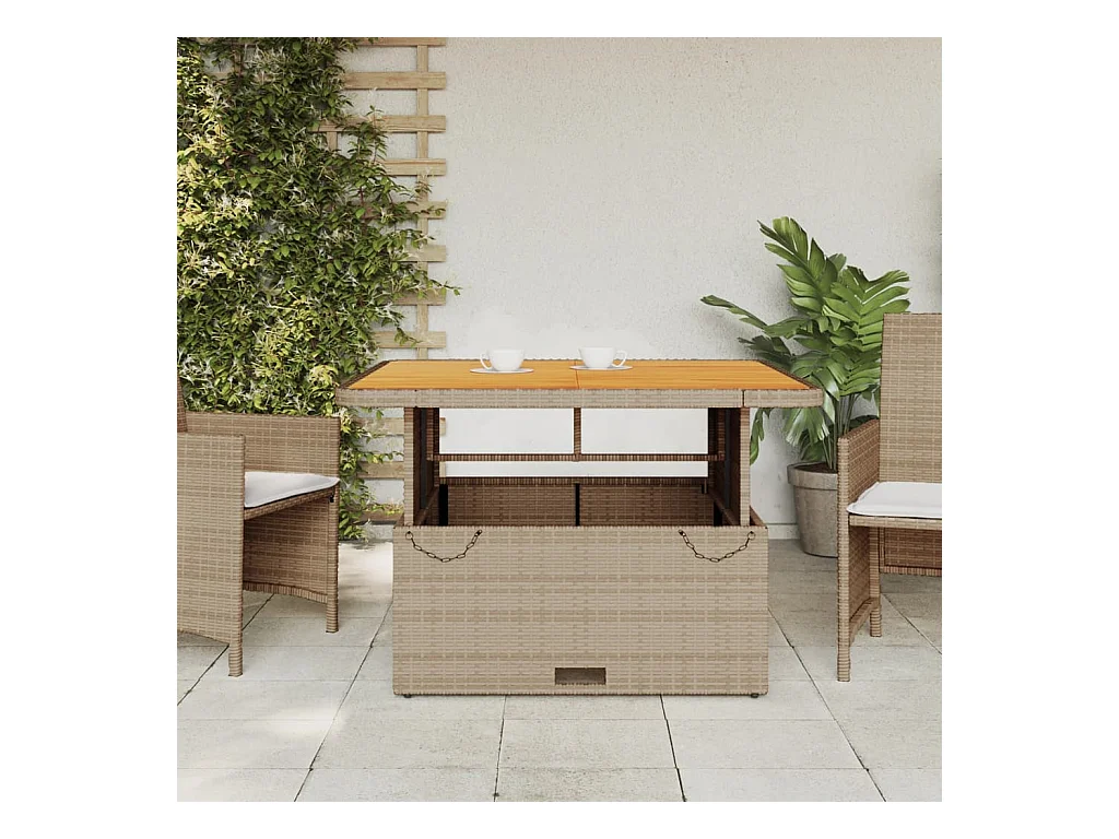 Table de jardin beige 110x110x71 cm résine tressée bois acacia
