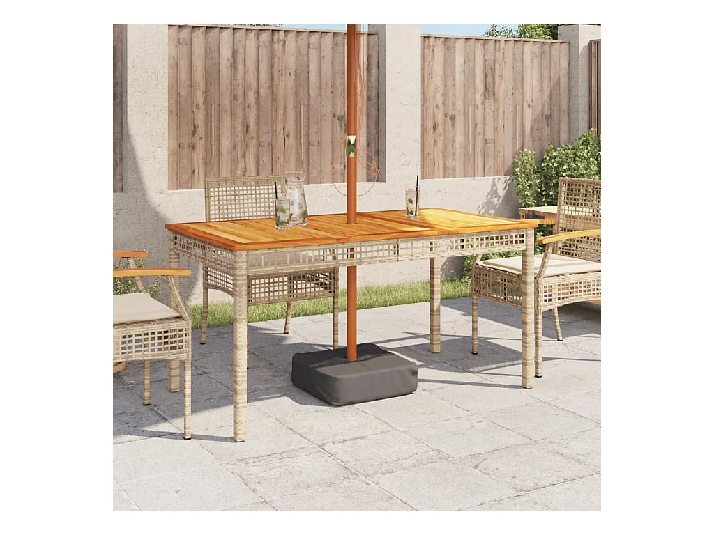 Table de jardin beige 140x80x75 cm résine tressée et acacia FR409014