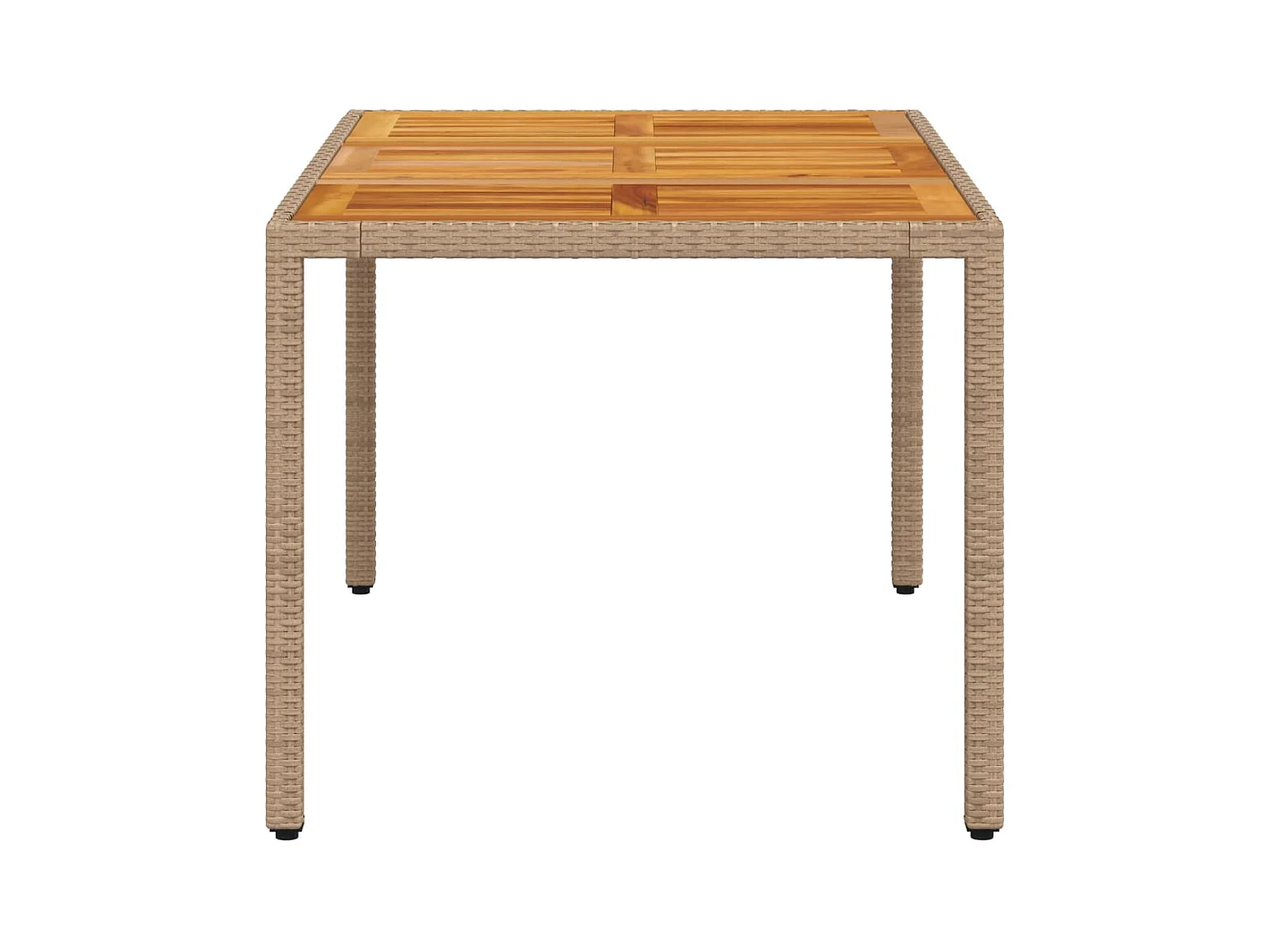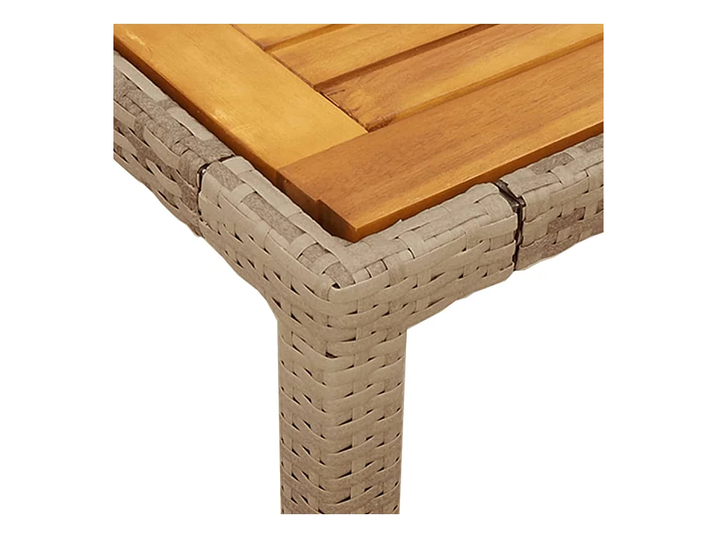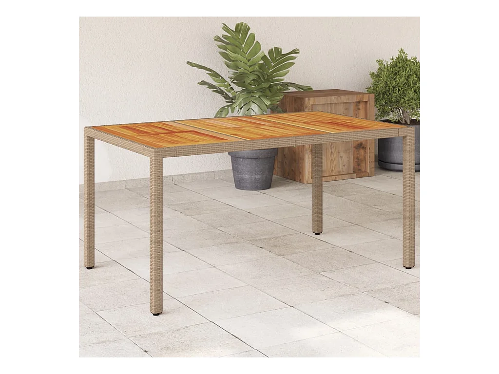 Table de jardin beige 150x90x75 cm résine tressée bois d'acacia