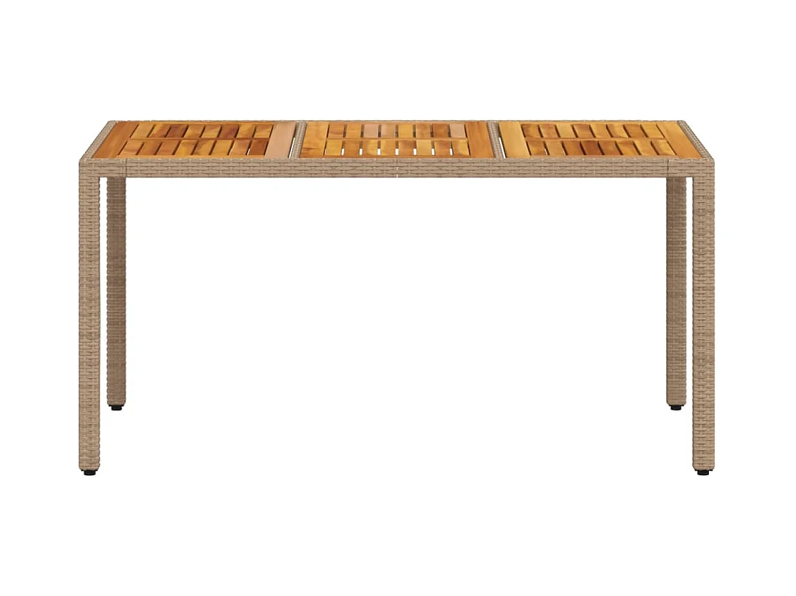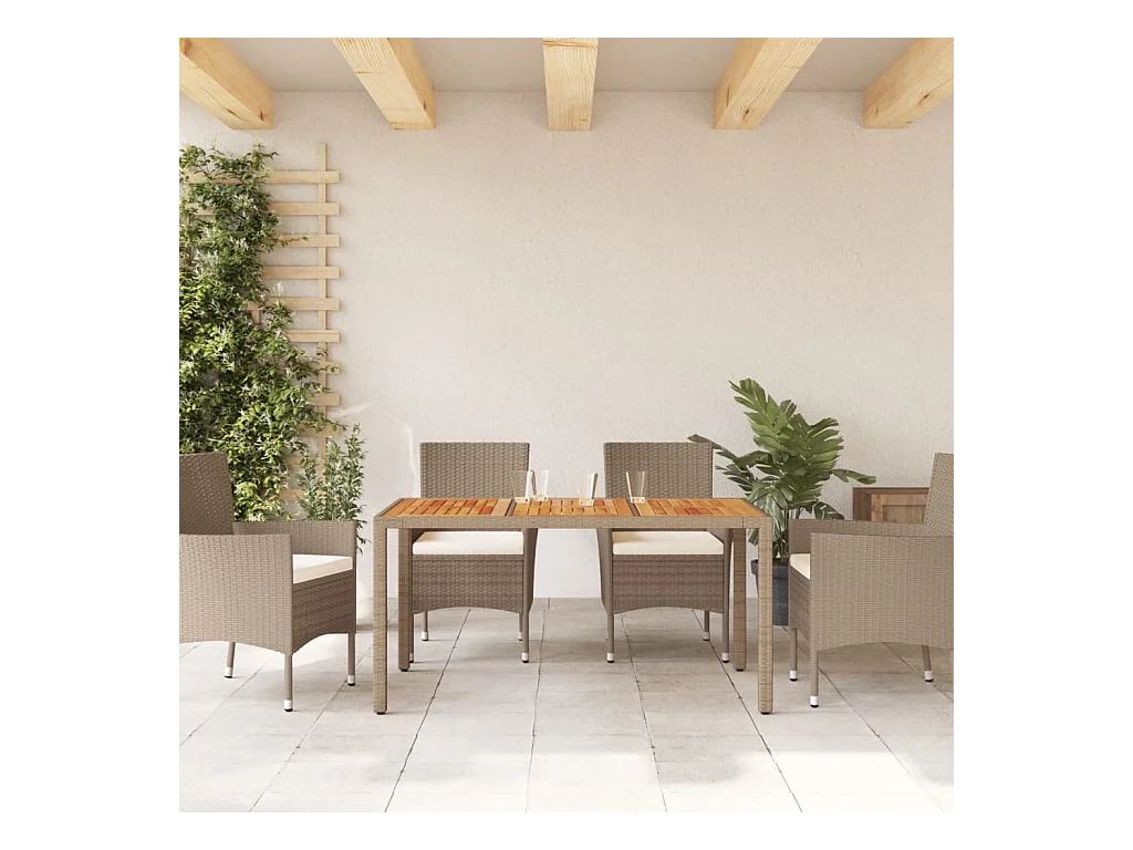 Table de jardin beige 150x90x75 cm résine tressée bois d'acacia FR246640