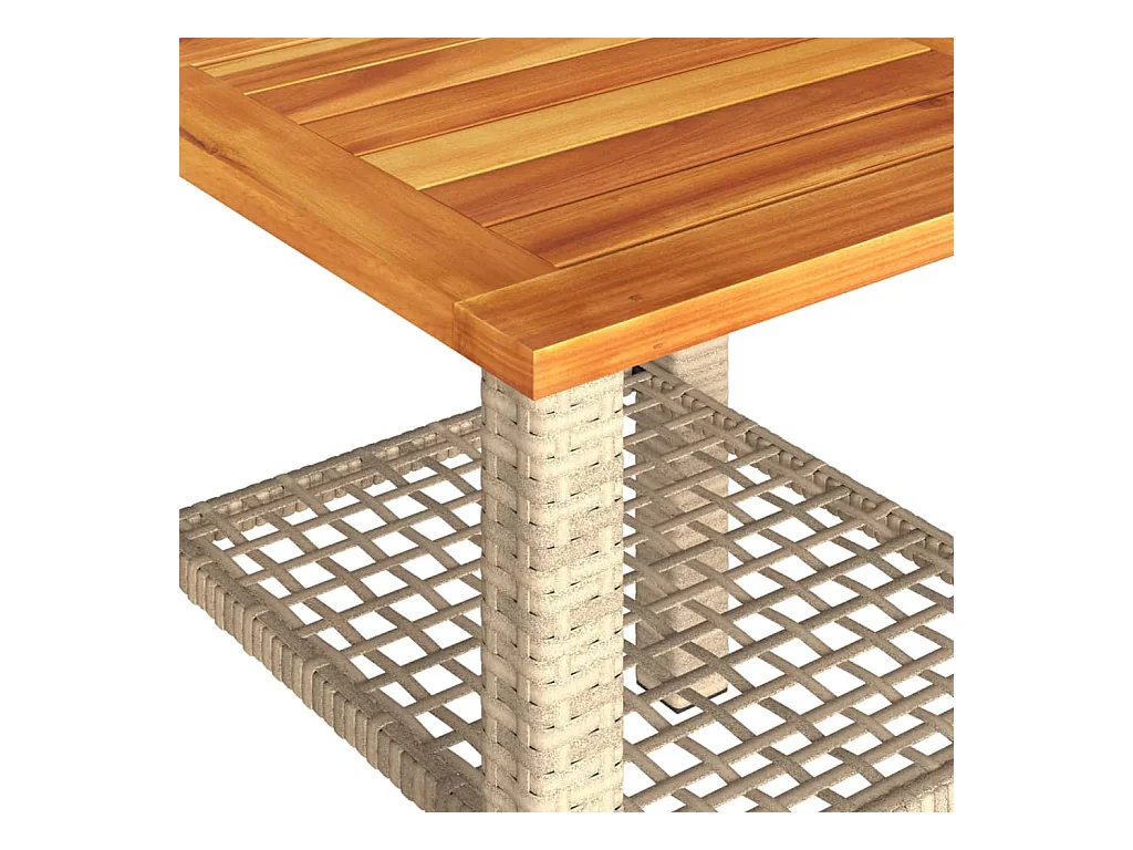 Table de jardin beige 45x45x37 cm résine tressée et bois acacia