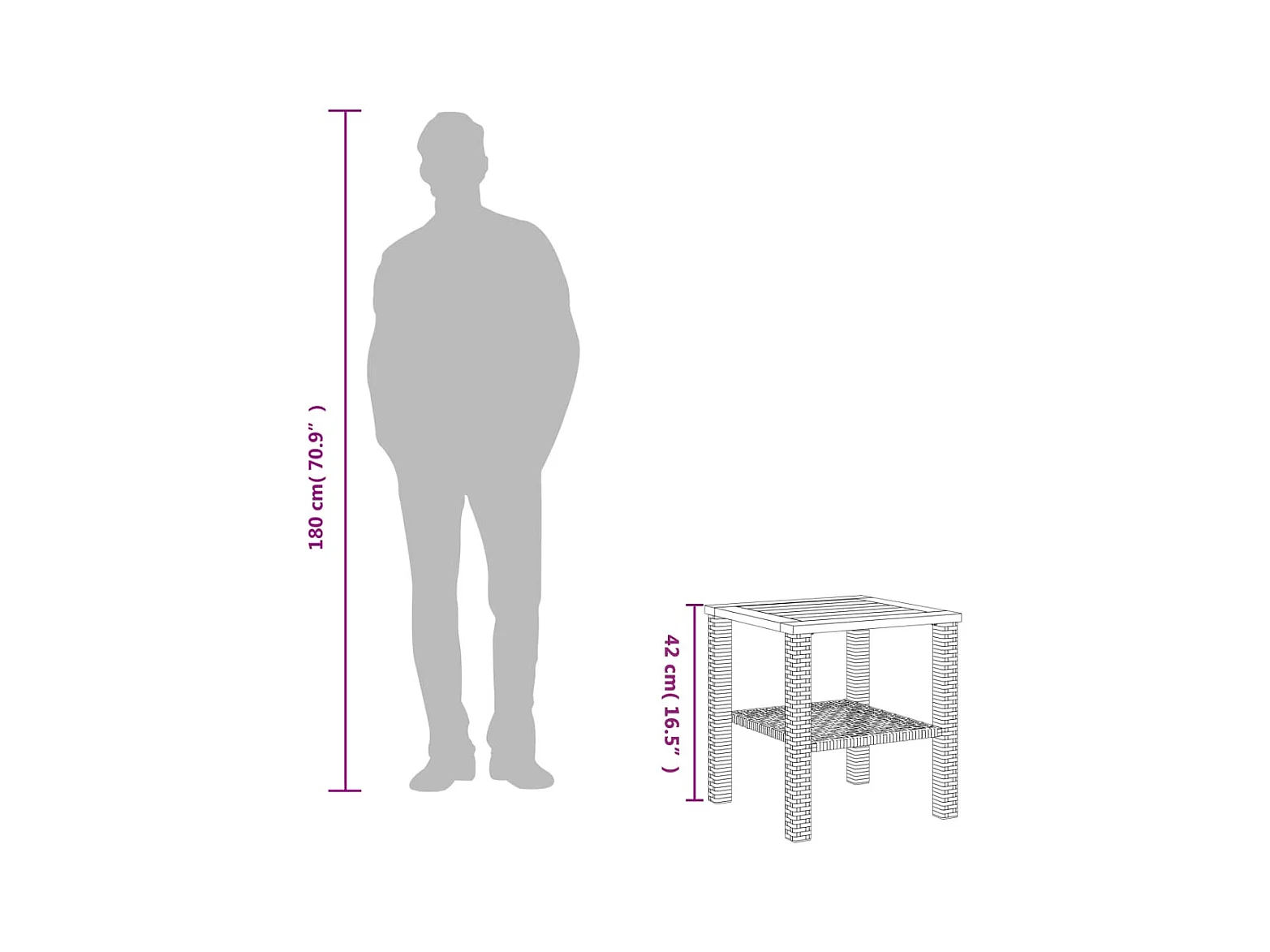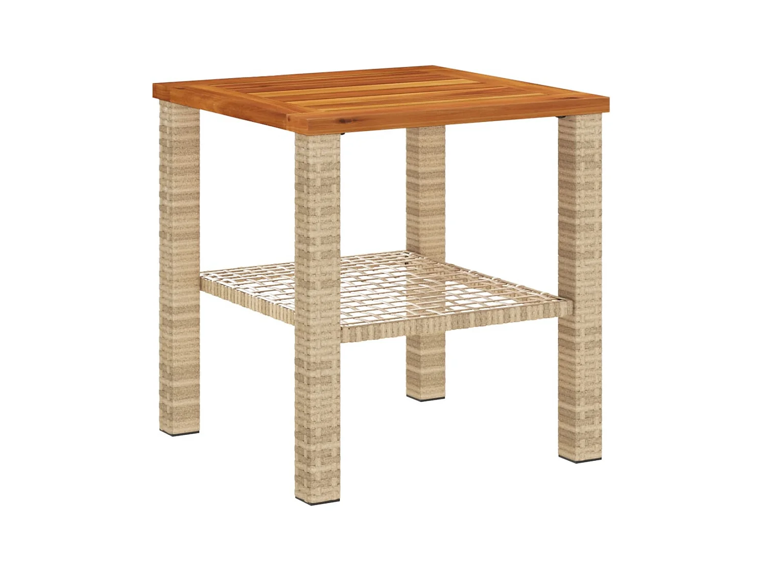 Table de jardin beige 40x40x42 cm résine tressée et bois acacia