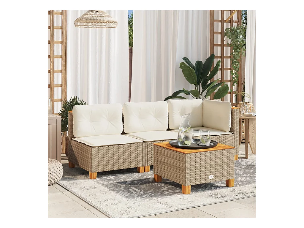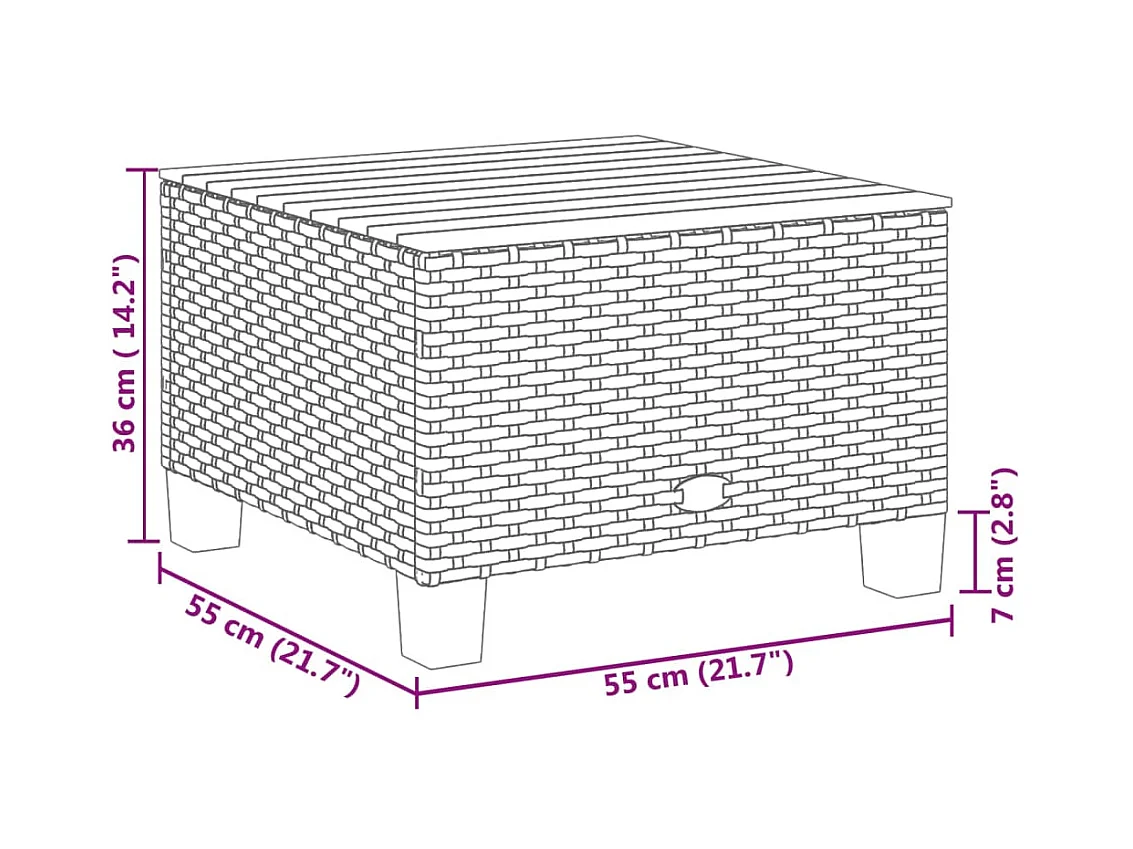 Table de jardin beige 55x55x36 cm résine tressée et bois acacia