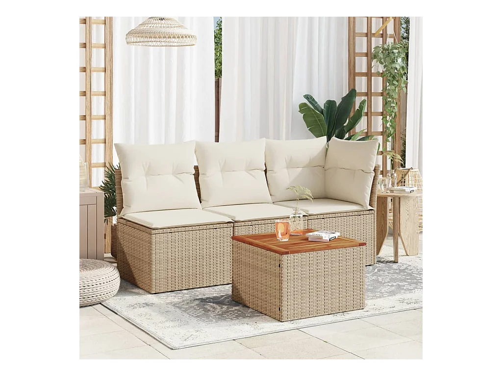 Table de jardin beige 110x110x71 cm résine tressée bois acacia GHR18466