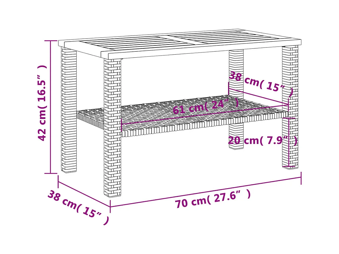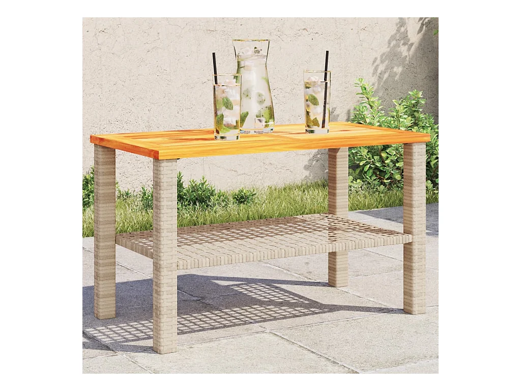 Table de jardin beige 70x38x42 cm résine tressée et bois acacia FR867452