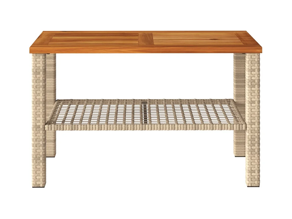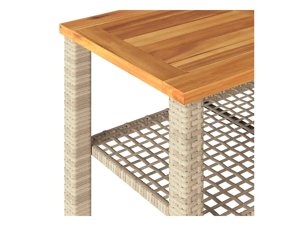 Table de jardin beige 70x70x25 cm résine tressée et bois acacia FR787277