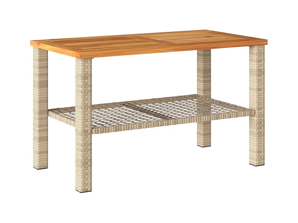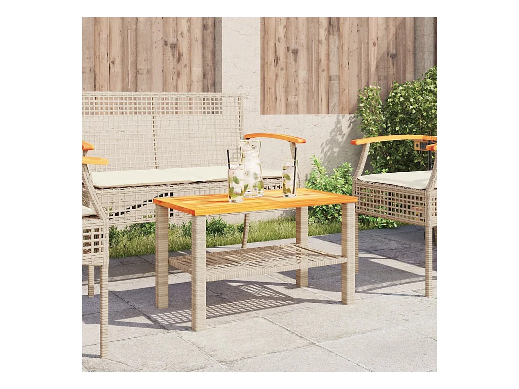 Table de jardin beige 70x70x25 cm résine tressée et bois acacia FR787277