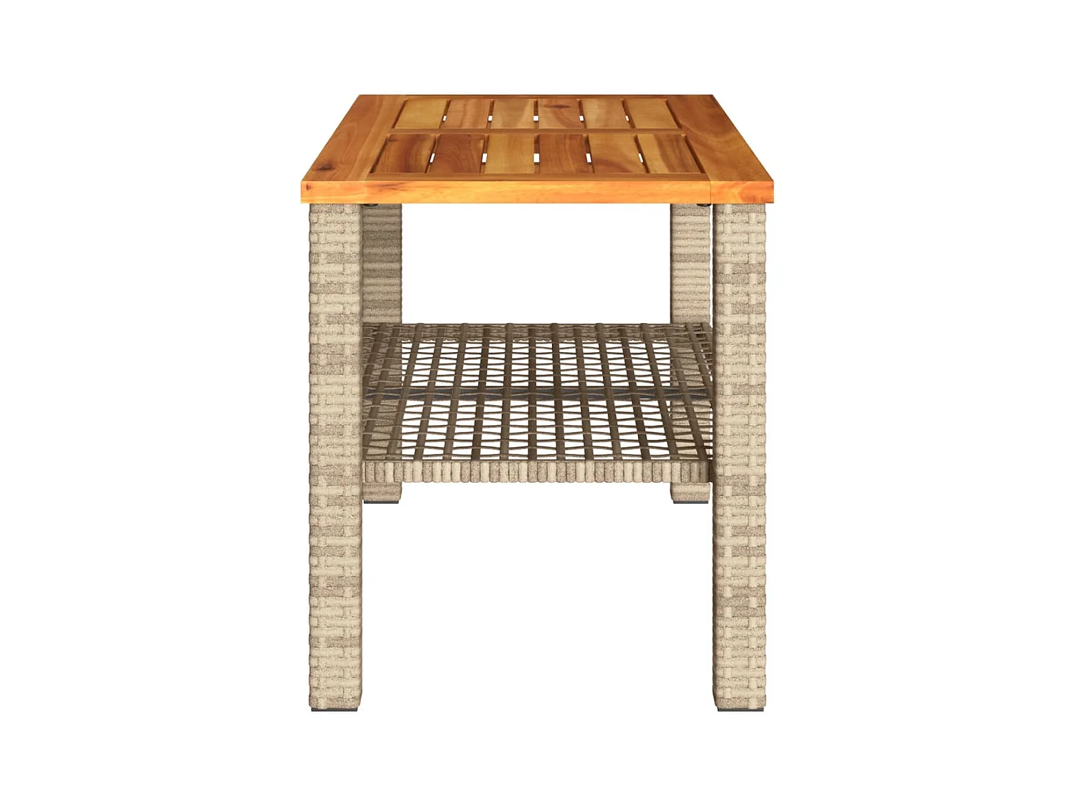 Table de jardin beige 70x38x42 cm résine tressée et bois acacia FR867452