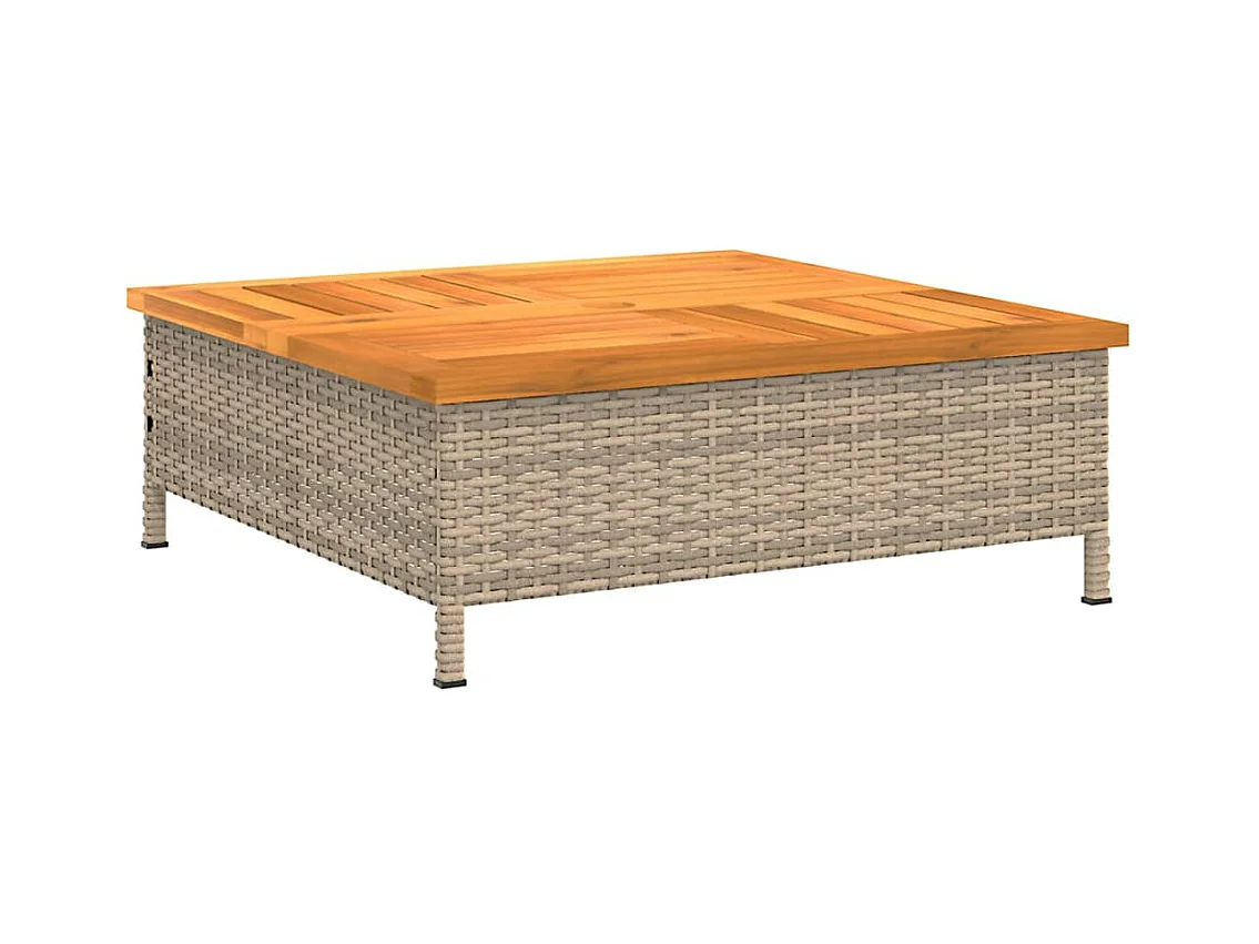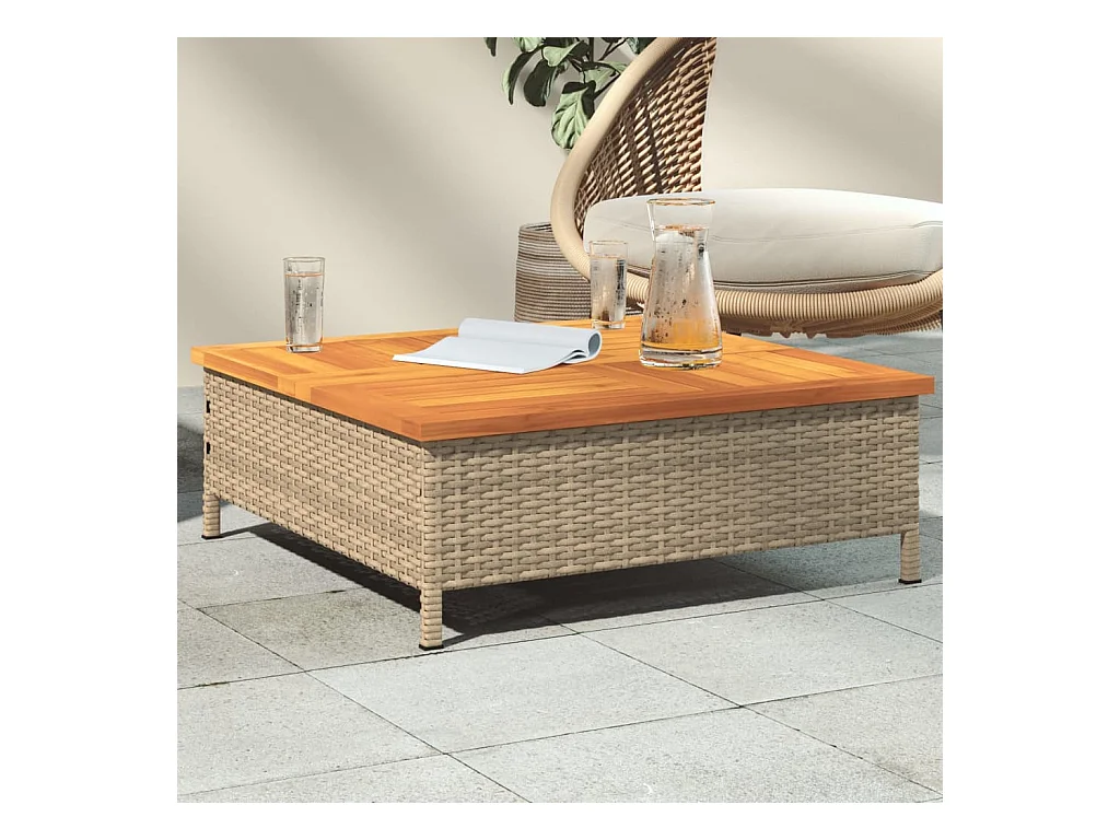 Table de jardin beige 70x70x25 cm résine tressée et bois acacia FR787277