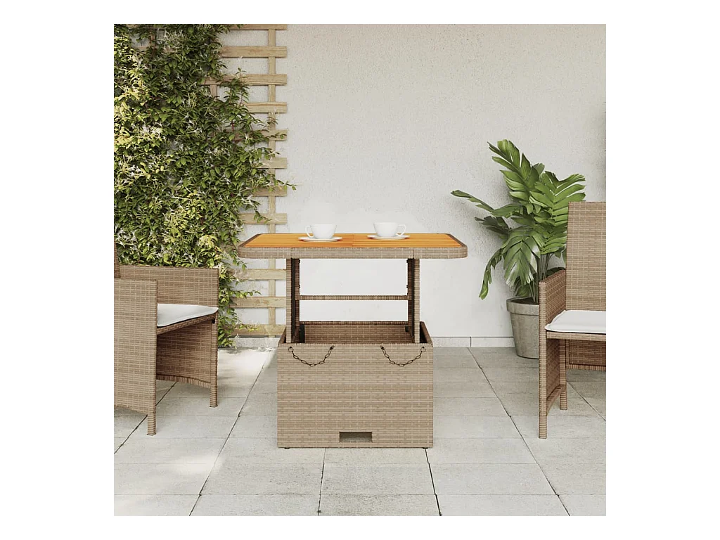 Table de jardin beige 110x110x71 cm résine tressée bois acacia