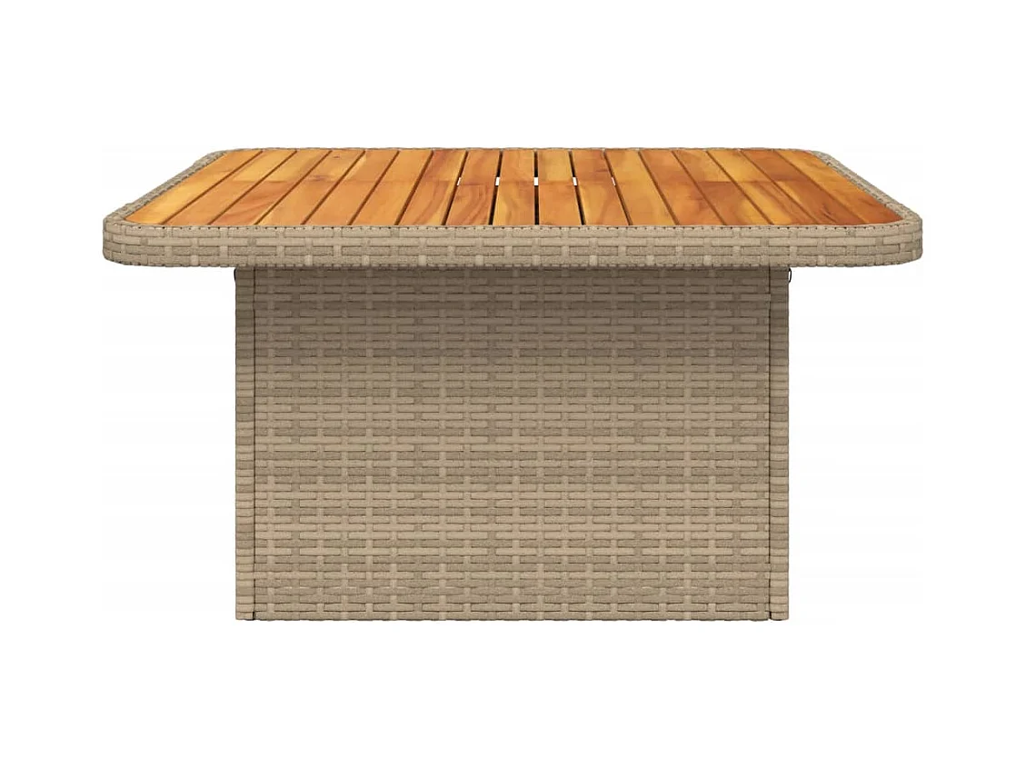 Table de jardin beige 90x55x71 cm résine tressée et bois acacia