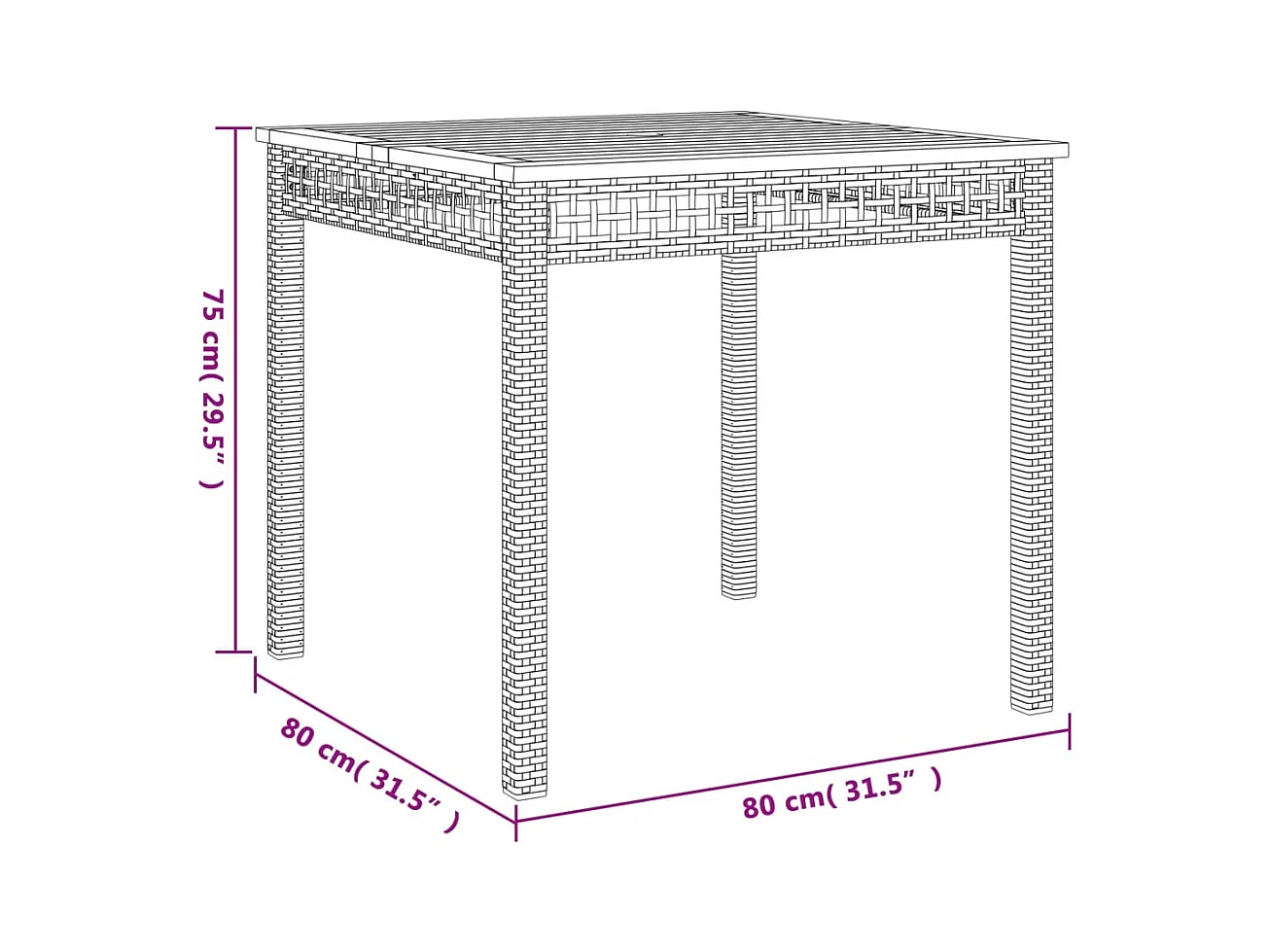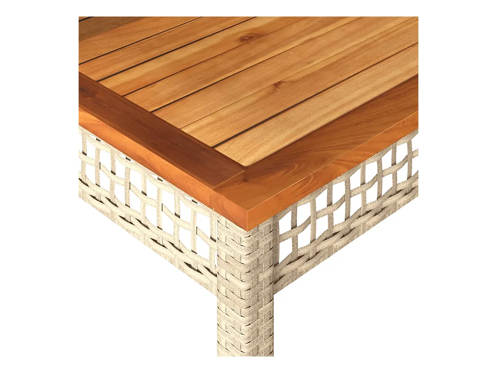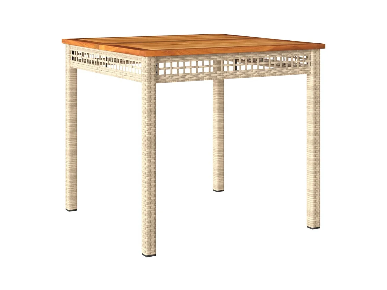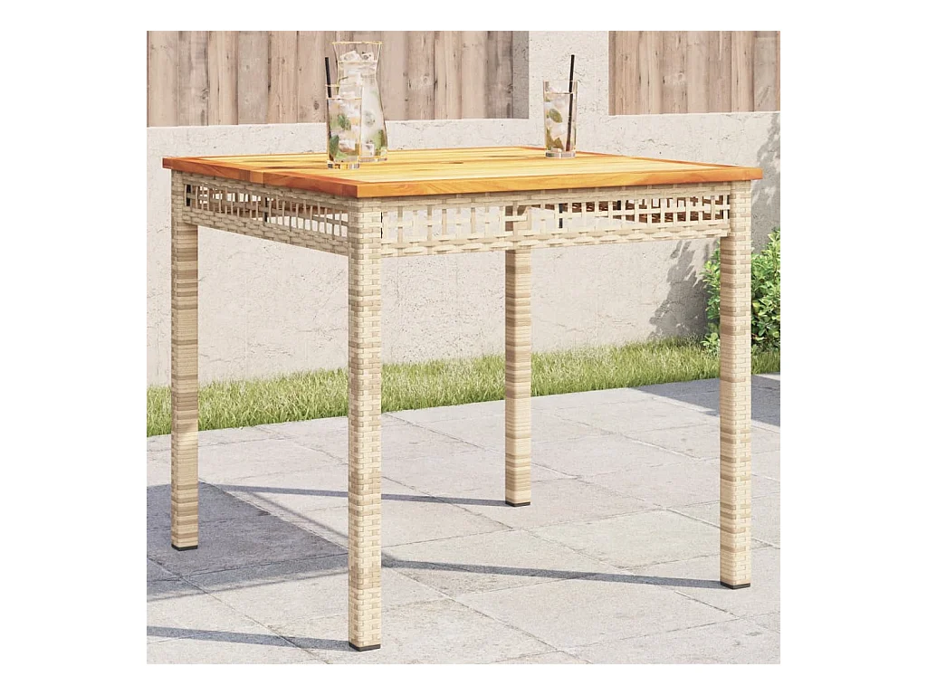 Table de jardin beige 80x80x75 cm résine tressée et bois acacia
