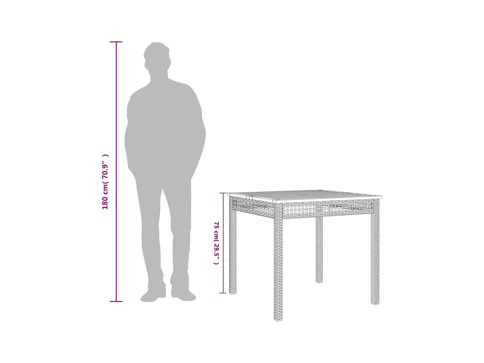 Table de jardin beige 80x80x71 cm résine tressée et bois acacia