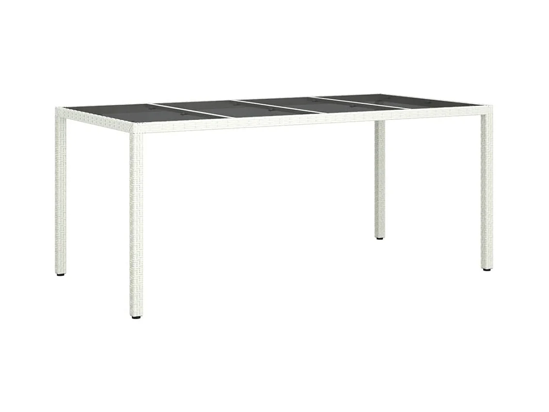 Table de jardin Blanc 190x90x75 cm Verre trempé/résine tressée