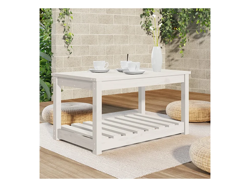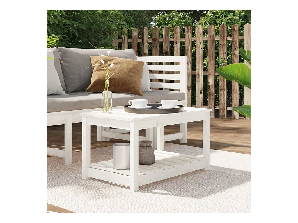 Table de jardin blanc 82,5x50,5x45 cm bois massif de pin