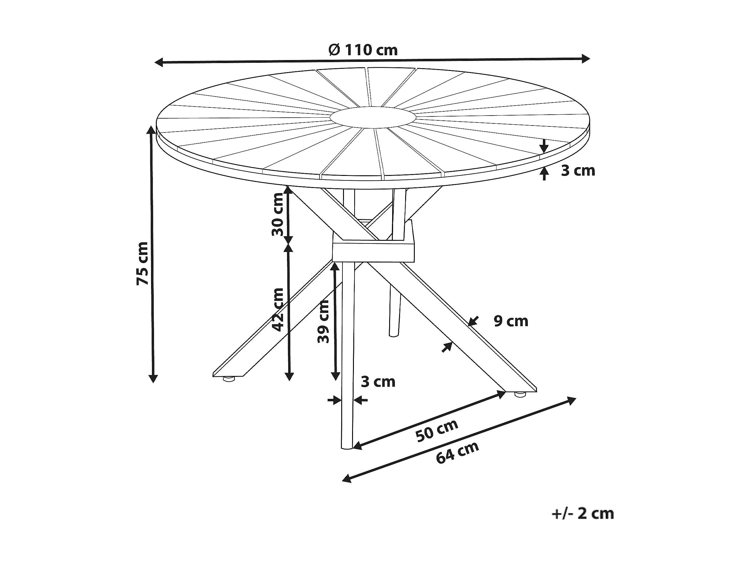 Table de salle à manger de jardin CISSONE 110 cm 110 cm Acacia Marron