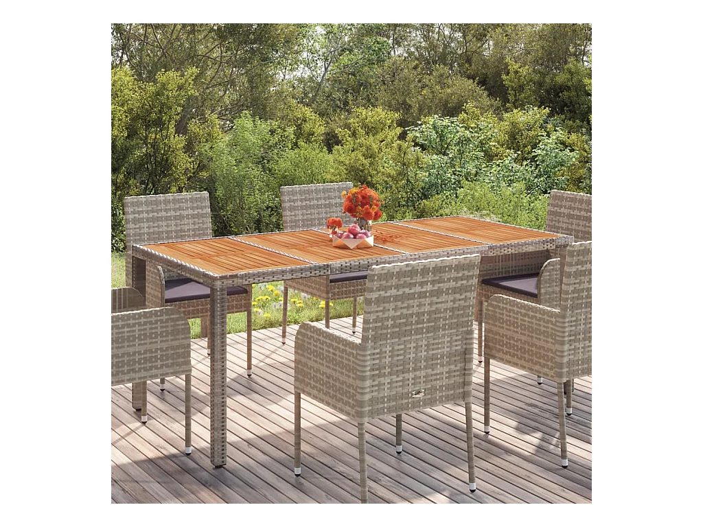 Table de jardin 190x90x75 cm Résine tressée/bois d'acacia Gris