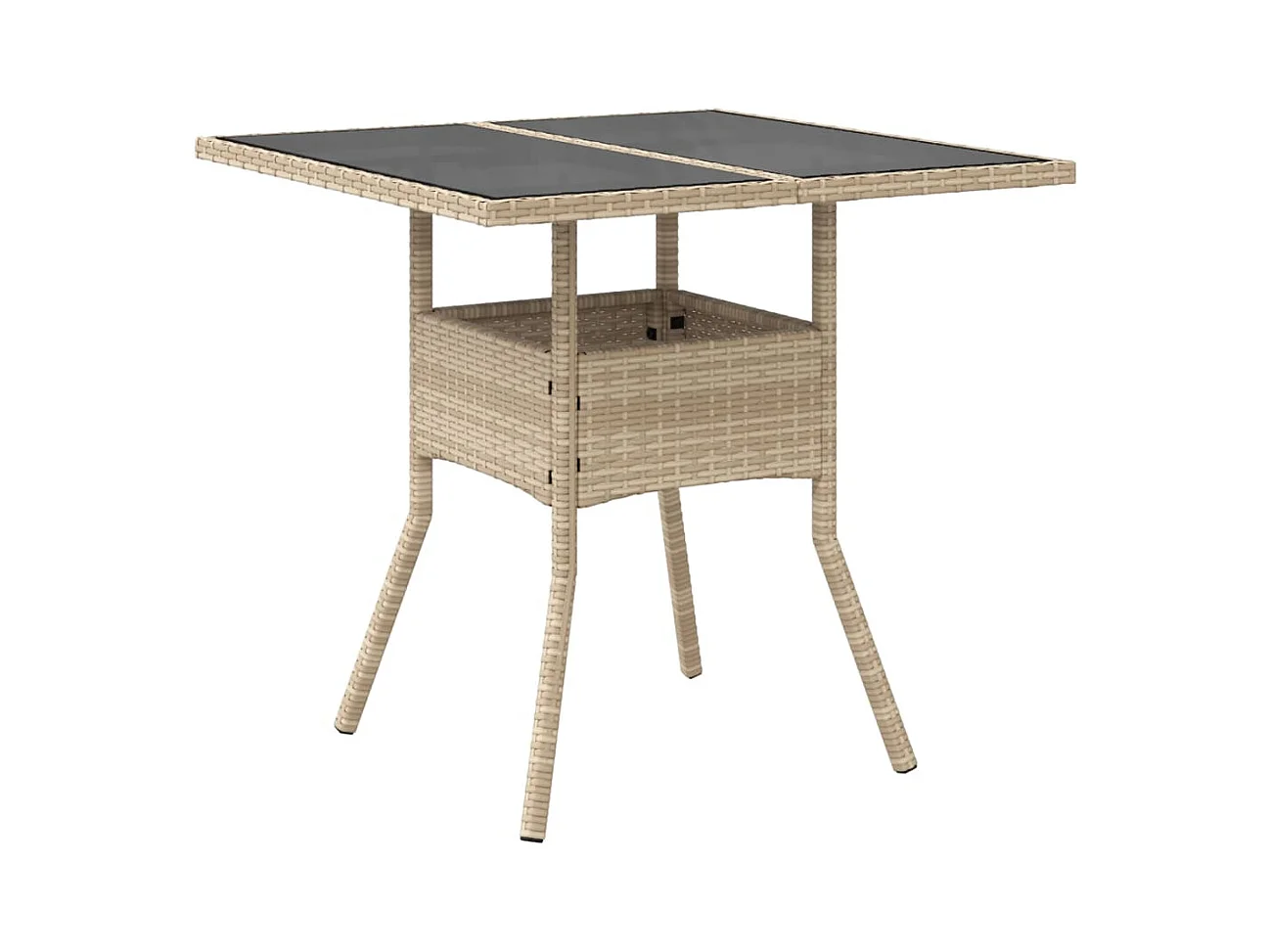 Table de jardin 90x90x75cm Verre trempé et résine tressée Beige