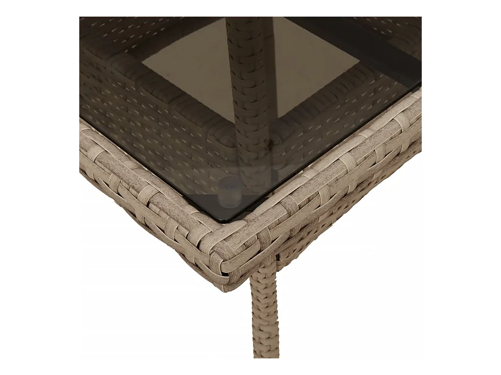 Table de jardin dessus en verre beige 80x80x75cm résine tressée