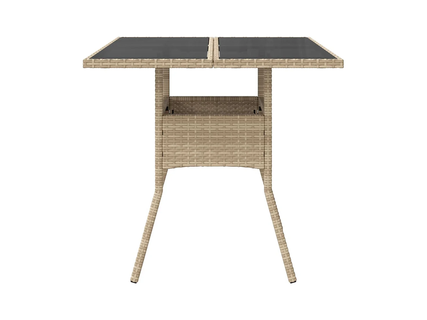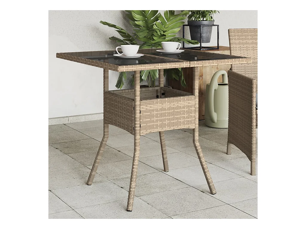 Table de jardin dessus en verre beige 80x80x75cm résine tressée FR598038
