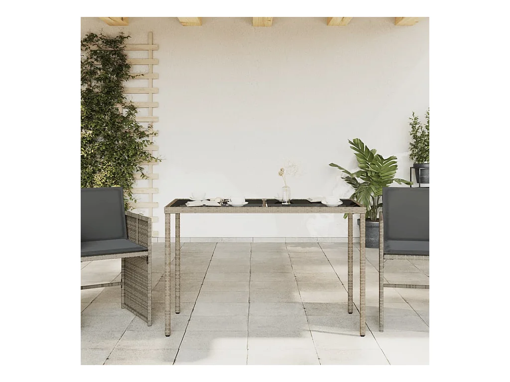 Table de jardin dessus en verre gris clair 115x54x74 cm rotin FR674726