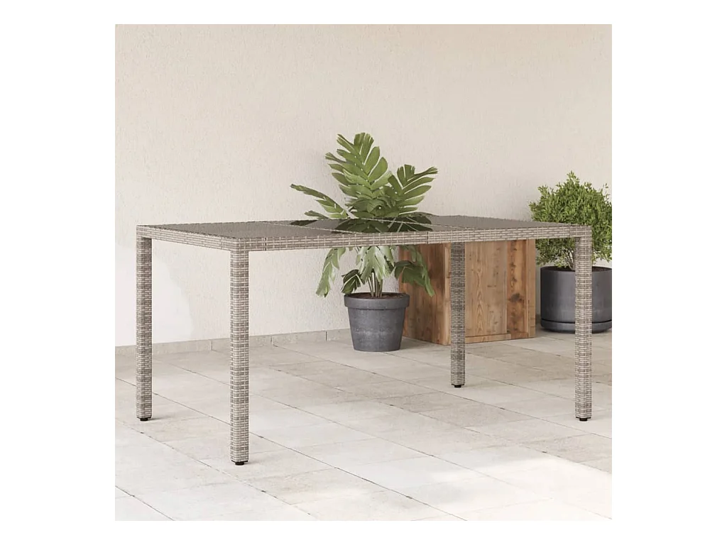 Table de jardin dessus en verre Gris 150x90x75cm Résine tressée FR970893