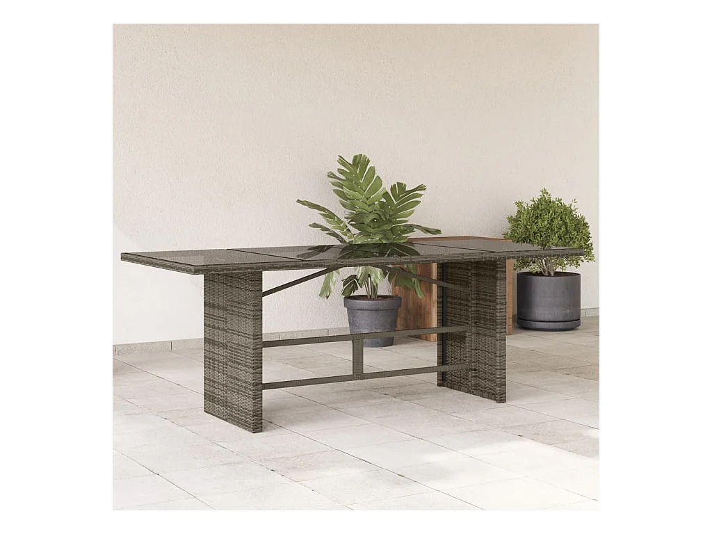 Table de jardin Gris 190x90x75 cm Verre trempé/résine tressée