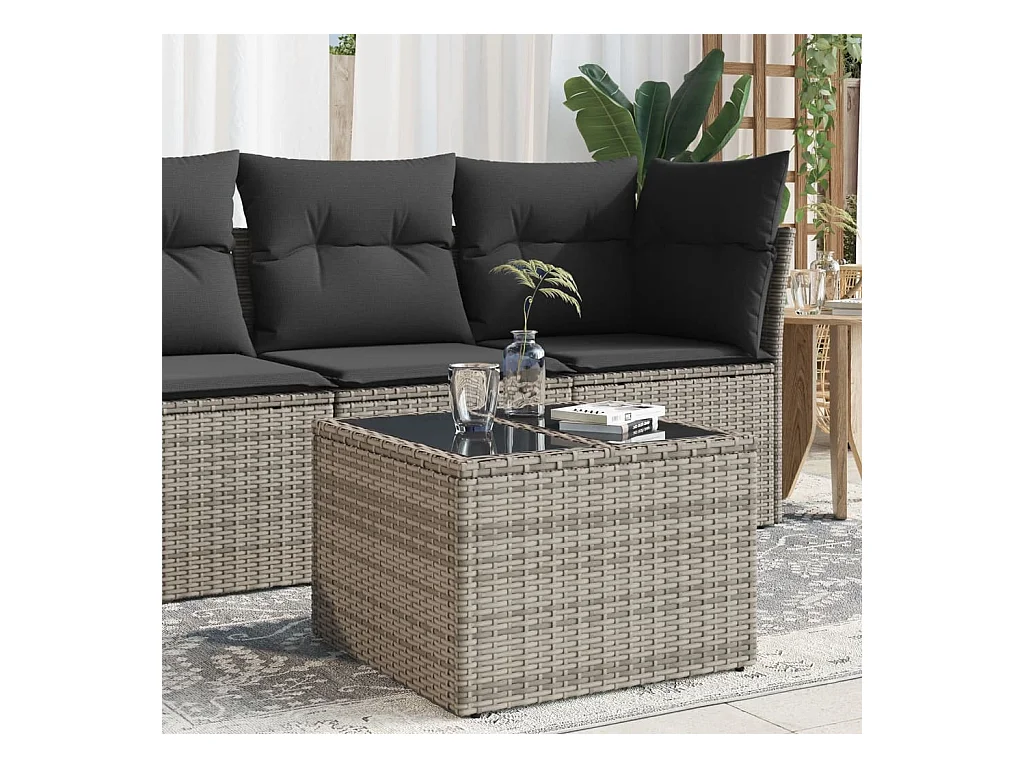 Table de jardin dessus en verre gris 55x55x37 cm résine tressée