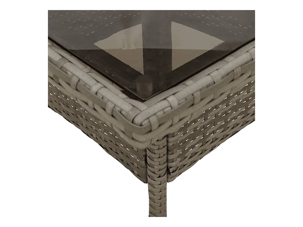 Table de jardin 90x90x75 cm Verre trempé et résine tressée Gris