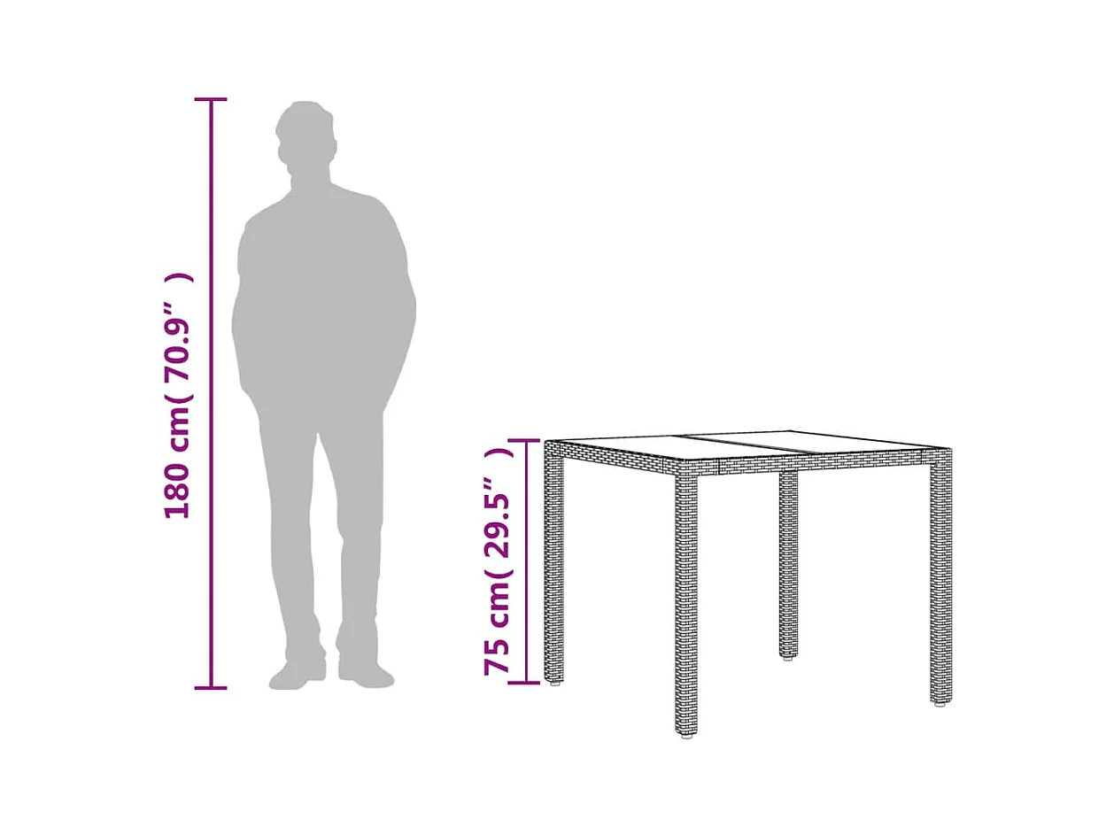 Table de jardin dessus en verre Gris 90x90x75 cm Résine tressée