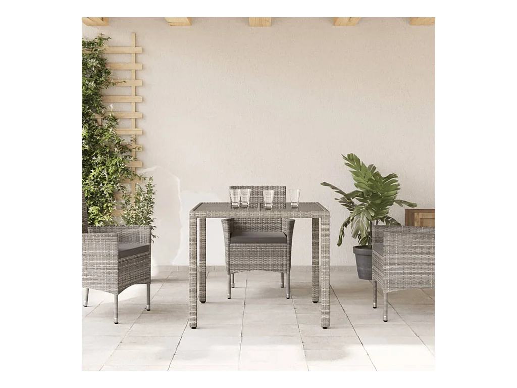 Table de jardin dessus en verre Gris 90x90x75 cm Résine tressée FR704186