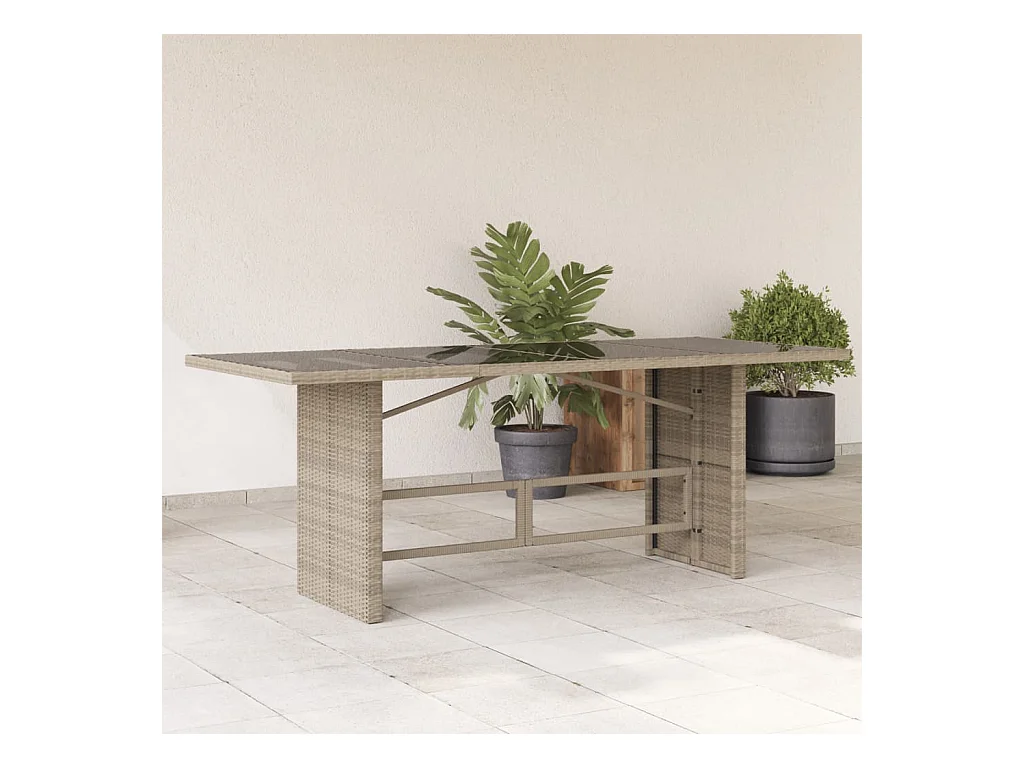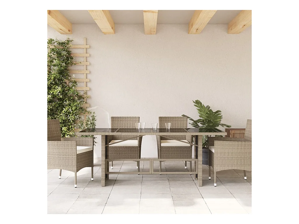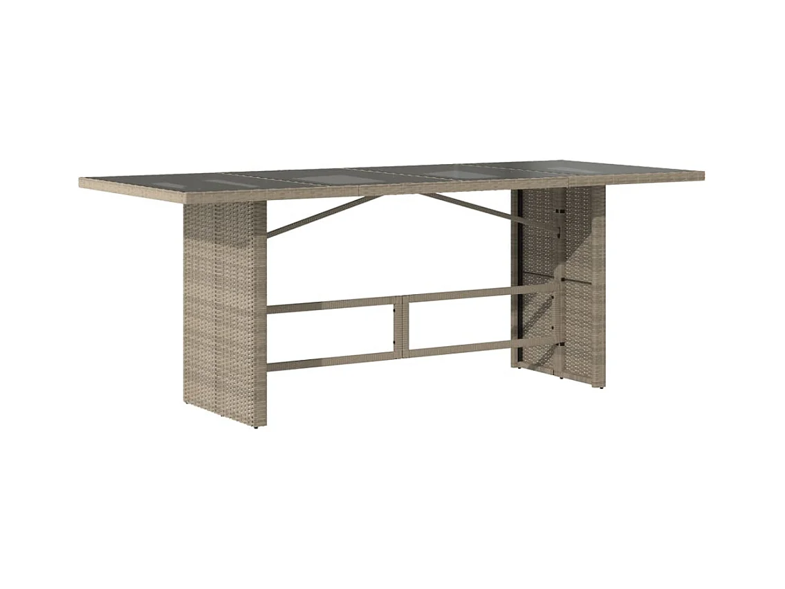 Table de jardin dessus en verre gris 190x80x74cm résine tressée FR268023