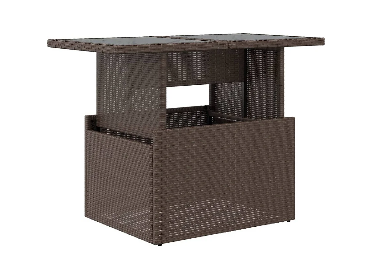 Table de jardin avec dessus en verre marron 110x68x70 cm rotin
