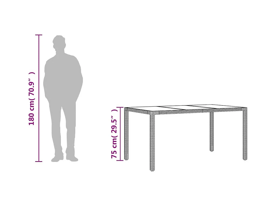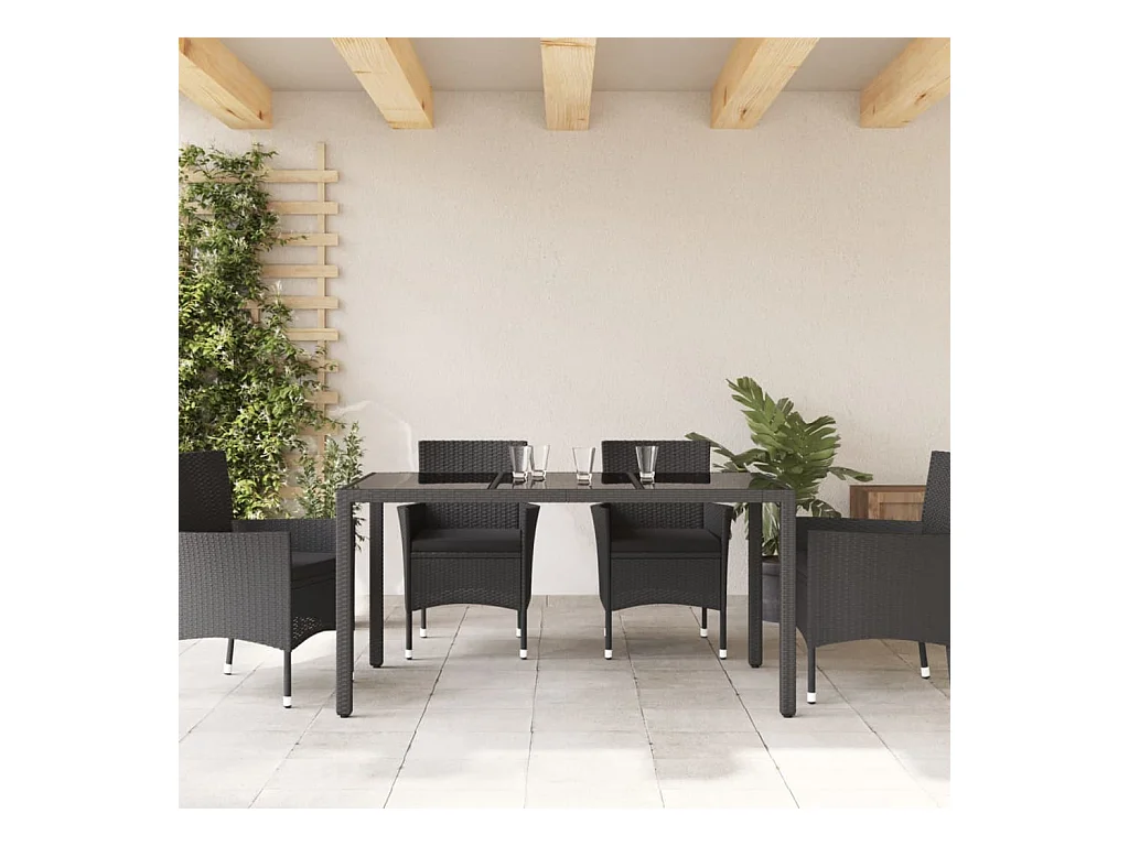 Table de jardin 150x90x75cm Verre trempé et résine tressée Noir