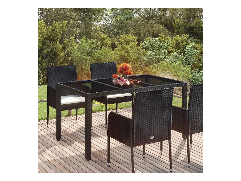 Table de jardin 150x90x75cm Verre trempé et résine tressée Noir
