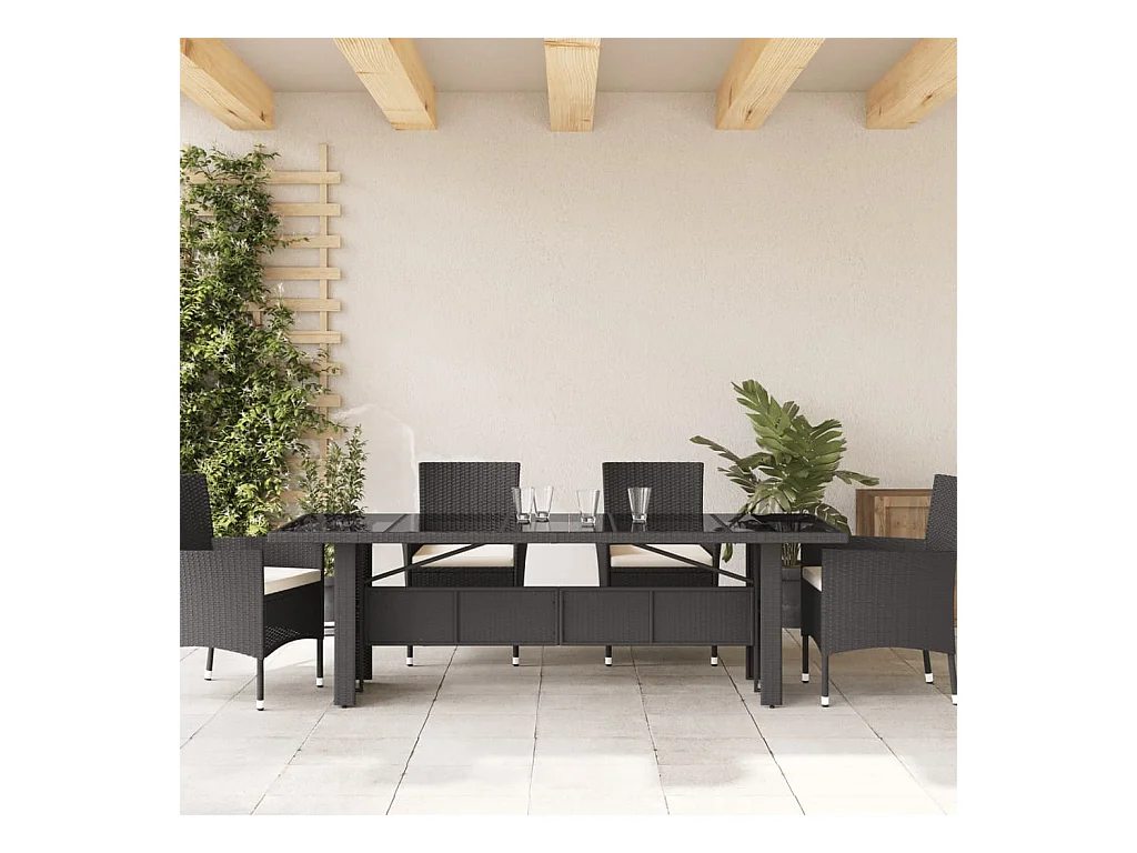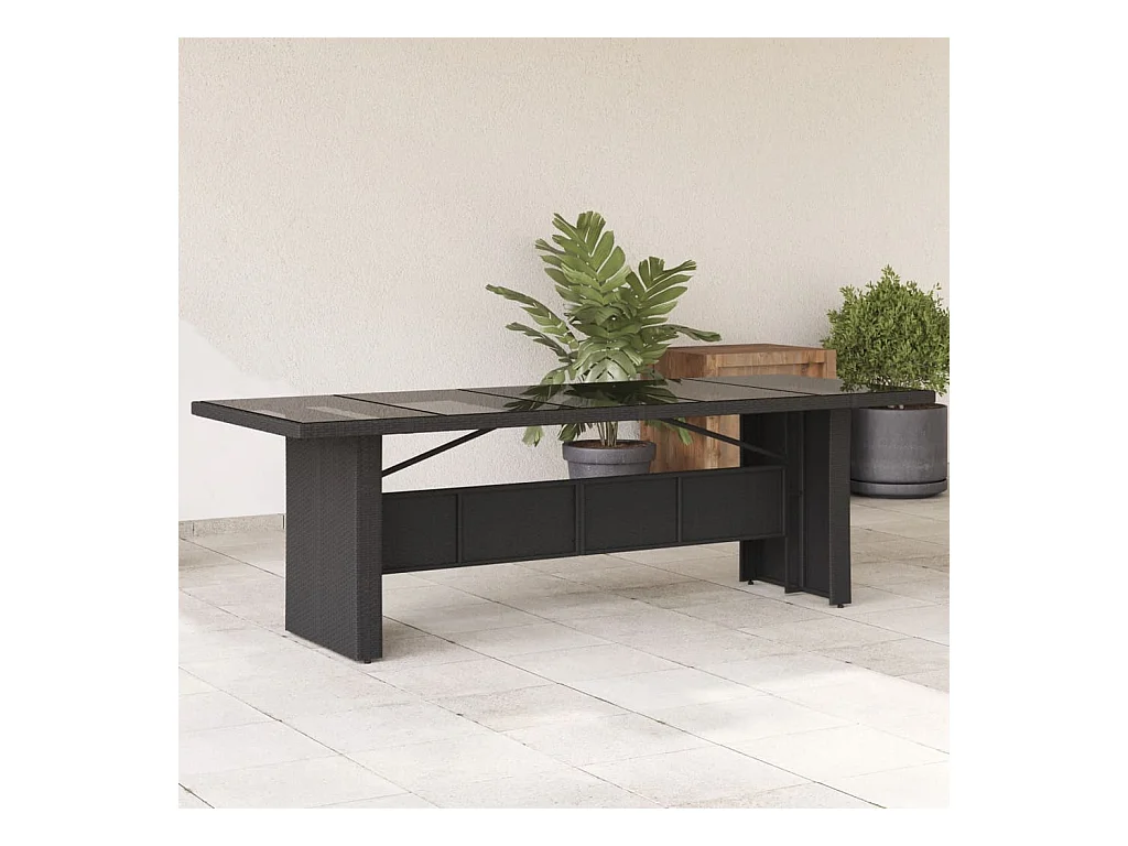 Table de jardin Noir 250x100x75 cm Verre trempé et poly rotin