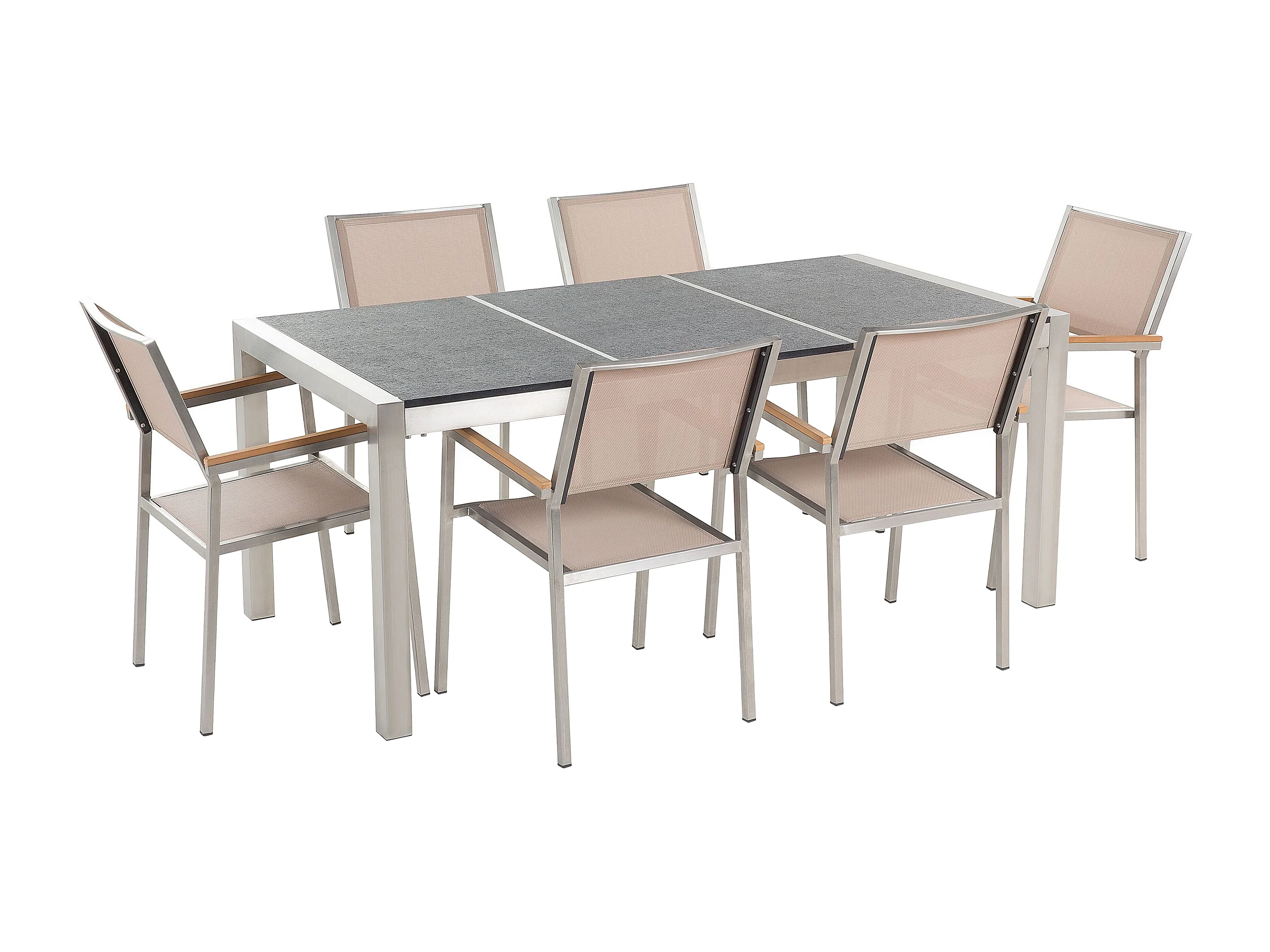 Salle à manger de jardin 6 places GROSSETO Triple plaque Basalte Flammé Noir/beige