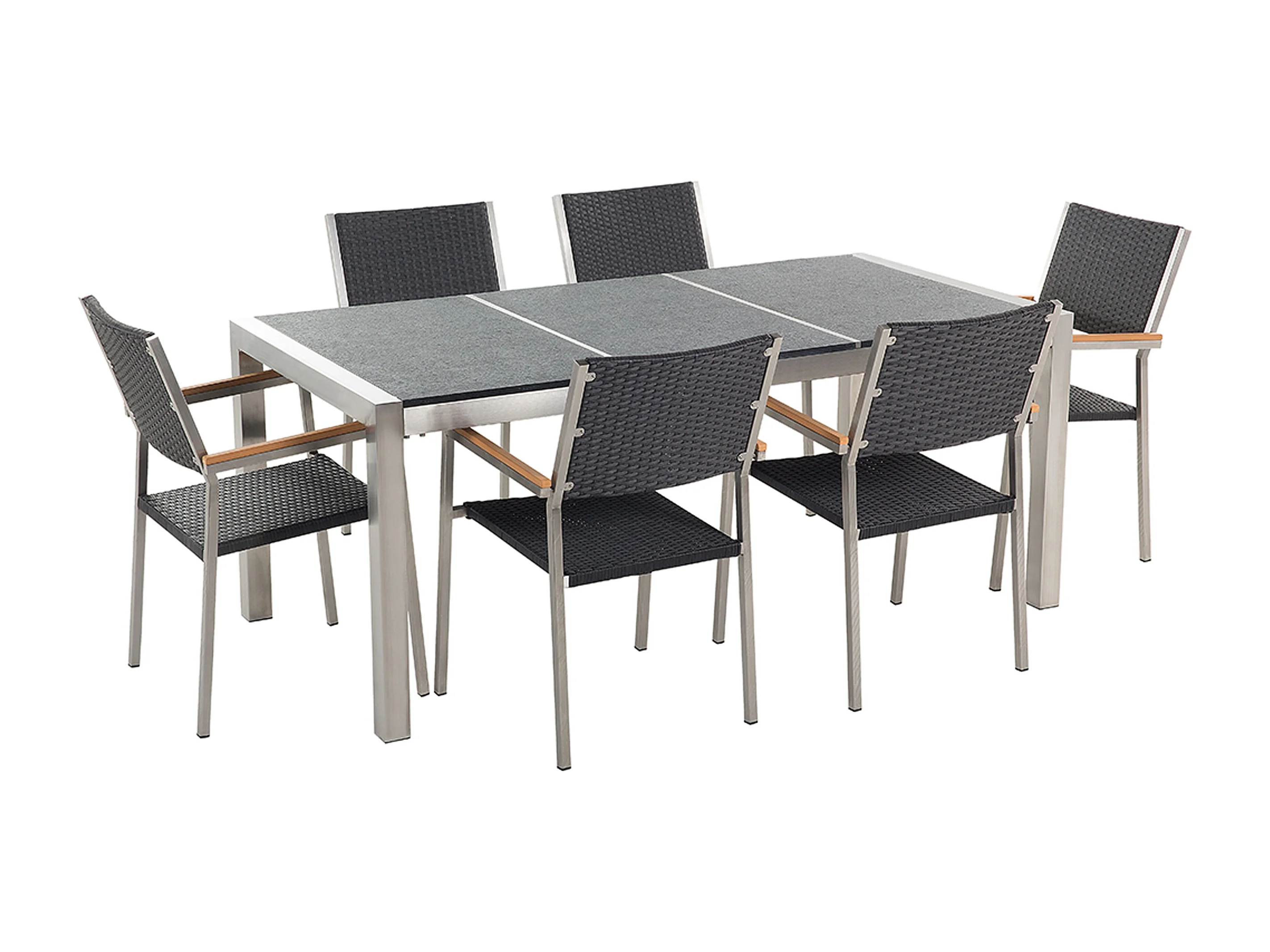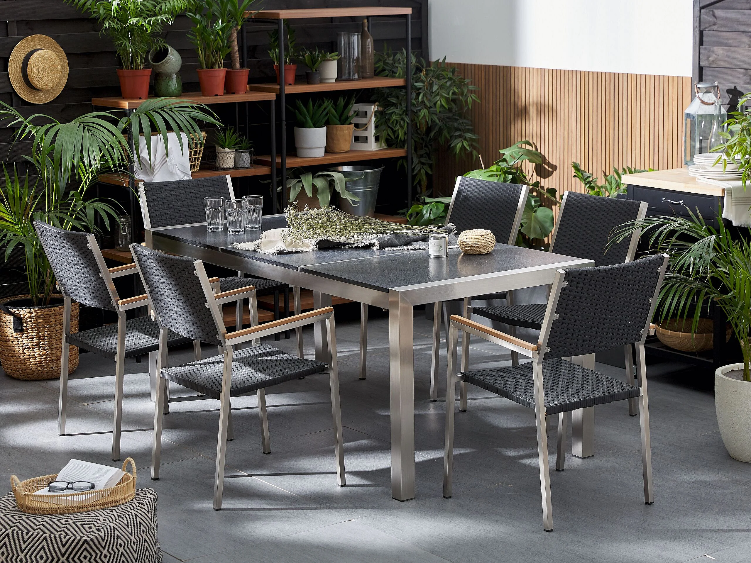 Salle à manger de jardin 6 places GROSSETO Triple plaque Basalte Flammé Noir
