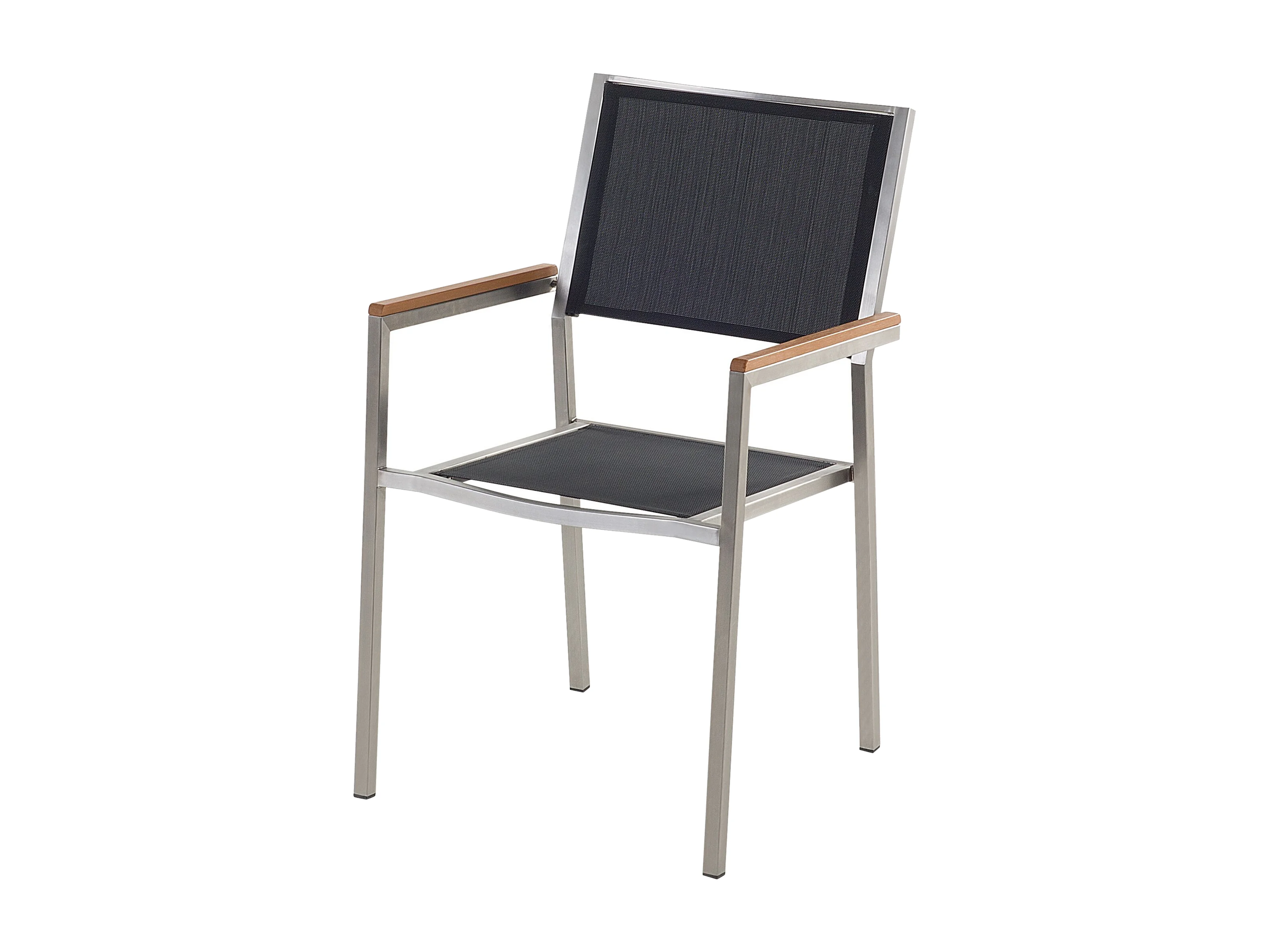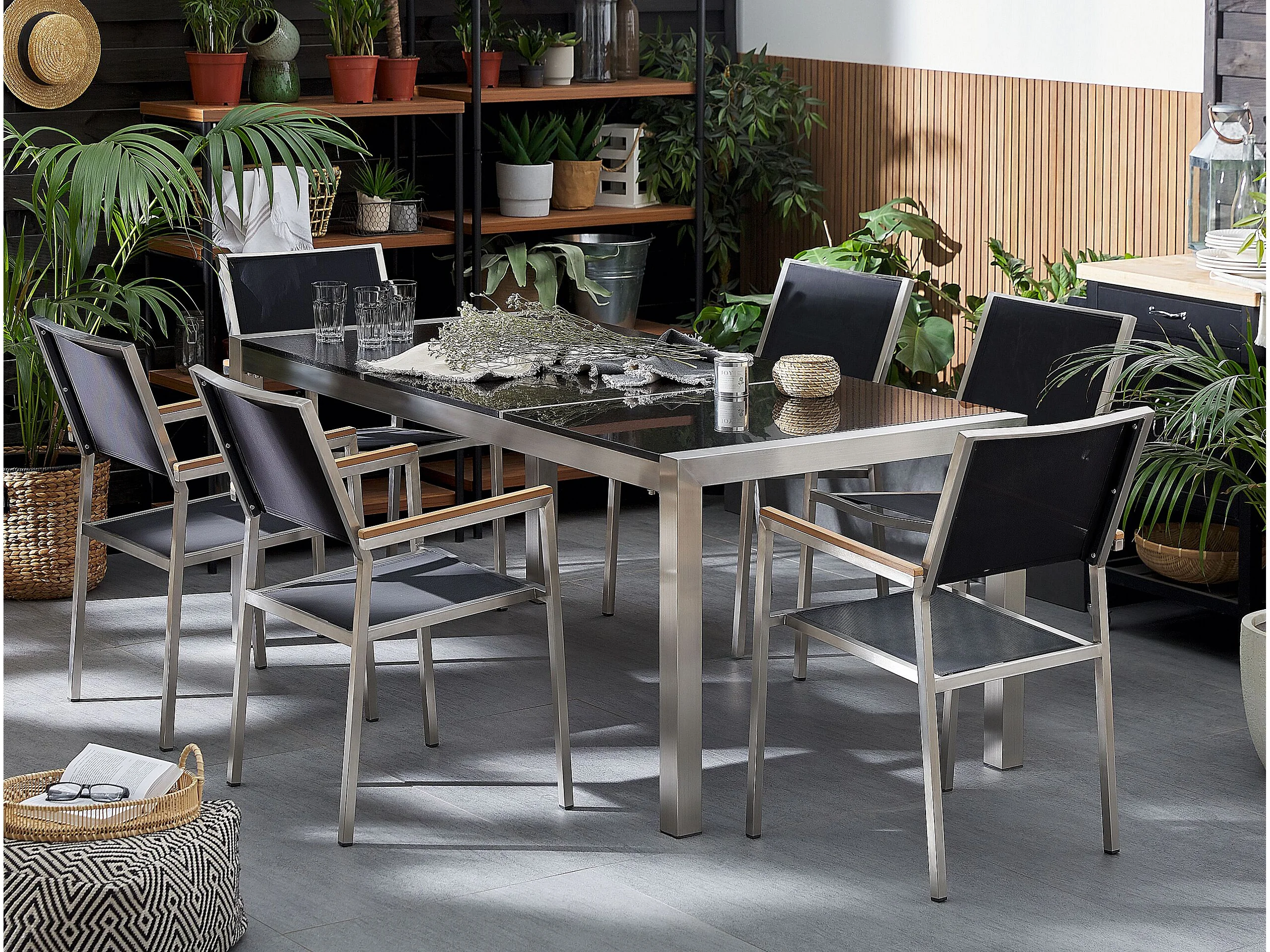 Salle à manger de jardin 6 places GROSSETO Triple plaque Granit Flammé Noir