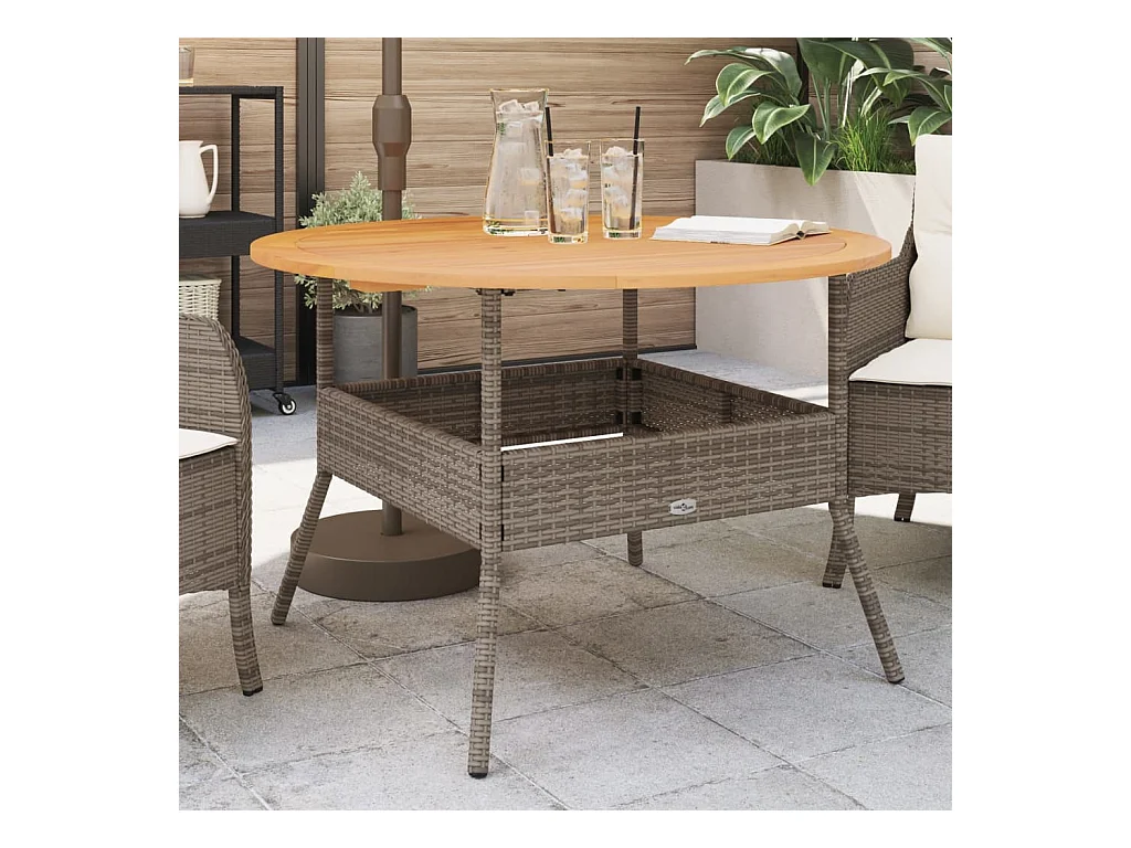 Table de jardin et dessus en bois d'acacia gris résine tressée FR145043
