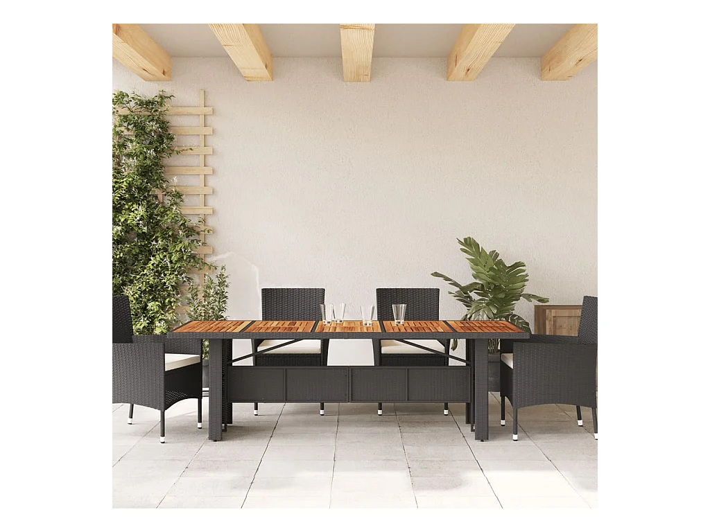 Table de jardin et dessus en bois d'acacia noir résine tressée