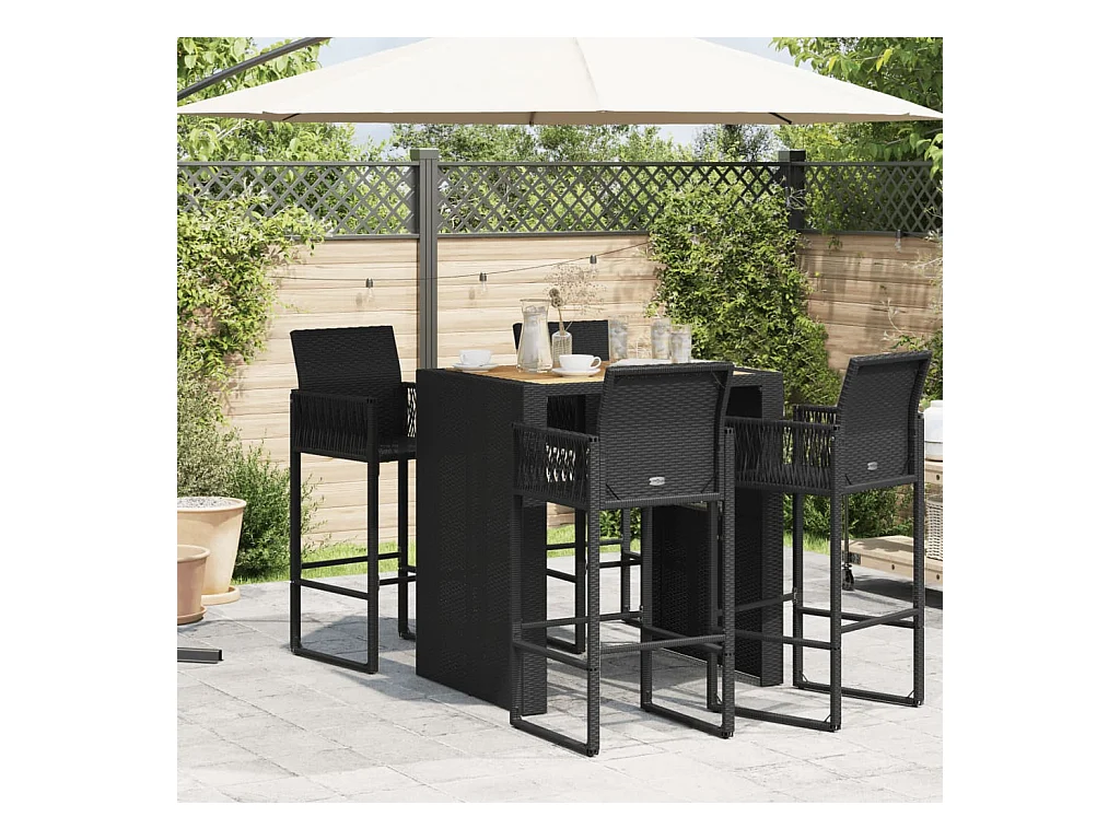 Table de bar et dessus en verre noir 110x70x110 cm poly rotin